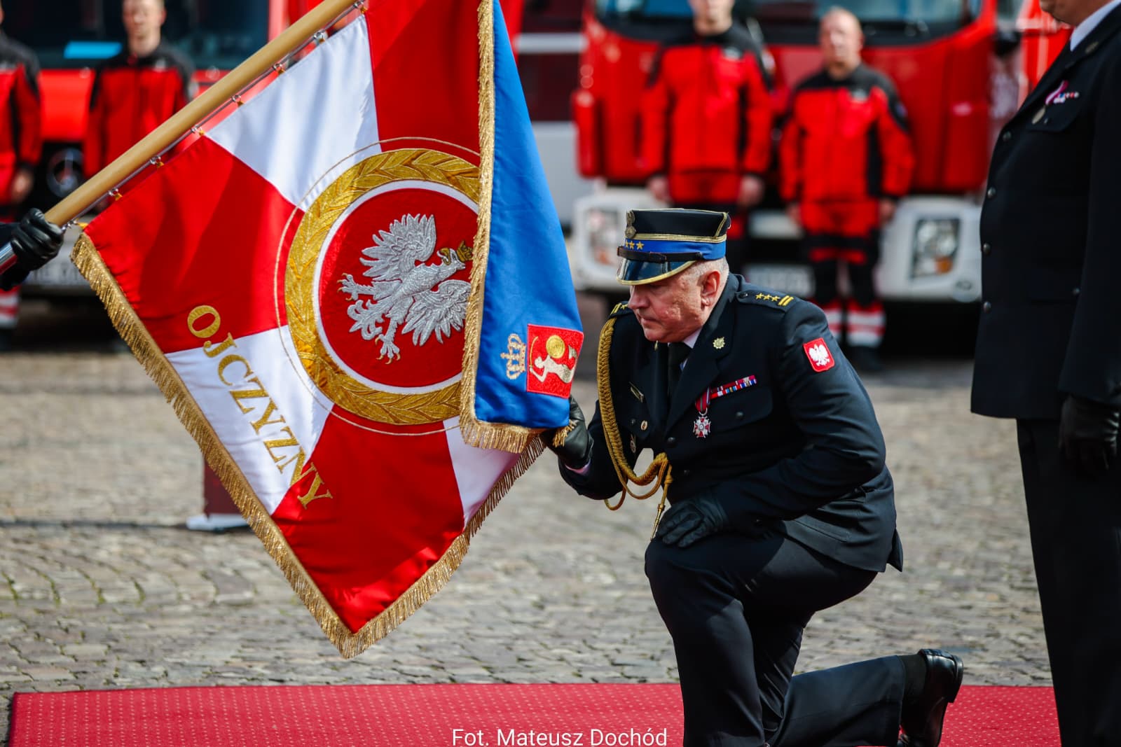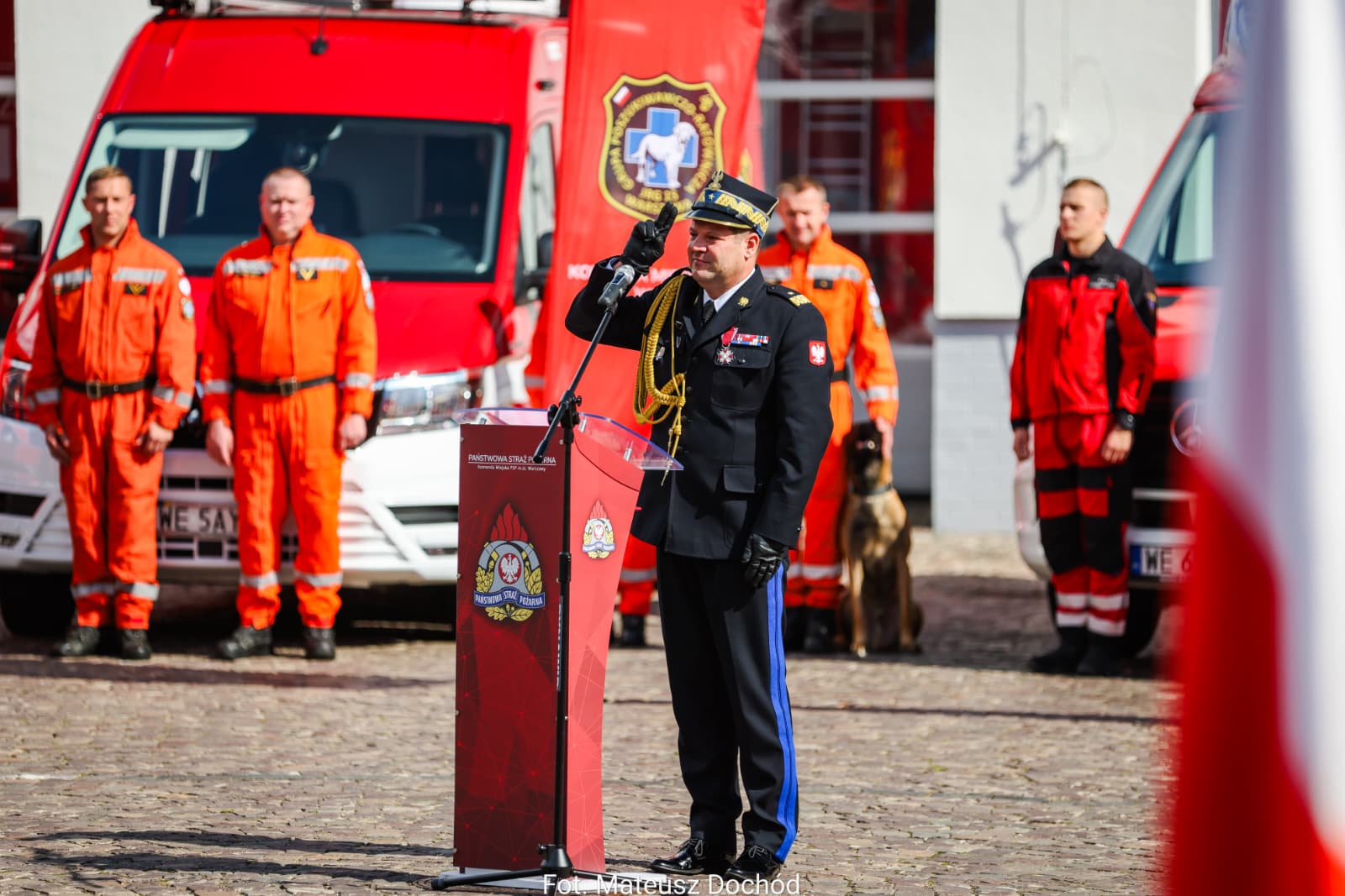 Uroczystość rozpoczęła się od złożenia meldunku przez dowódcę uroczystości Komendantowi Głównemu PSP nadbryg. Wojciechowi Kruczkowi.