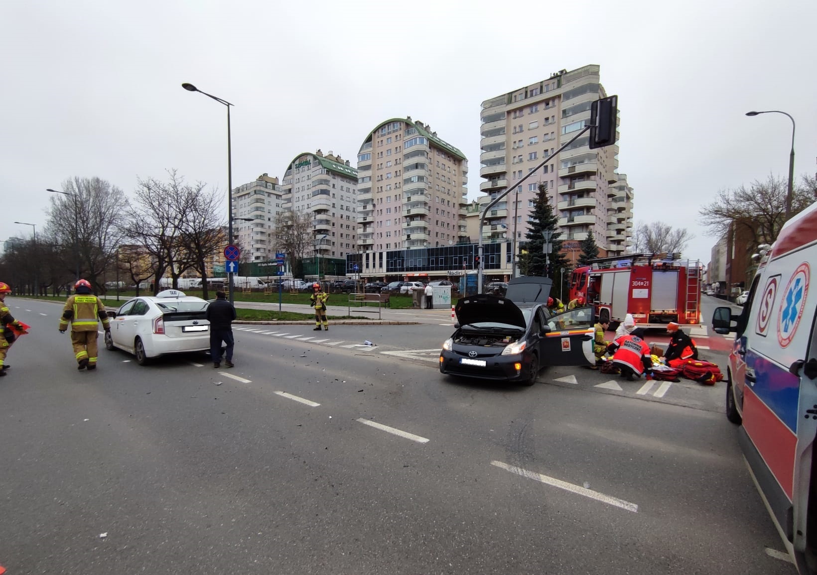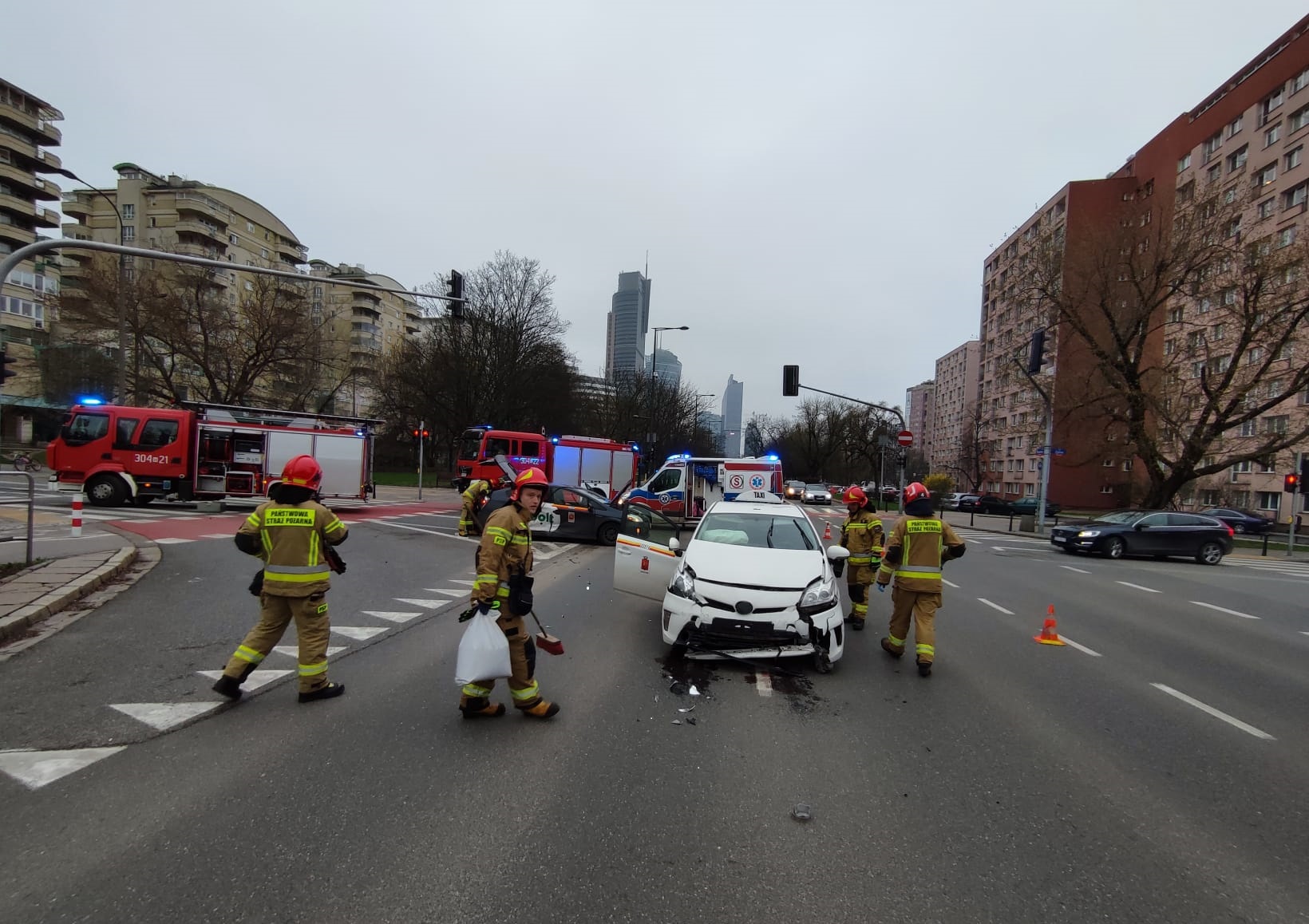 W dniu 02.04.2023r. o godz. 7:48 do punktu alarmowego JRG 4 KM PSP w Warszawie wpłynęło zgłoszenie o zderzeniu dwóch taksówek na skrzyżowaniu ulicy Żytniej z ulicą Okopową. Do zdarzenia zadysponowano dwa zastępy PSP z JRG 4.