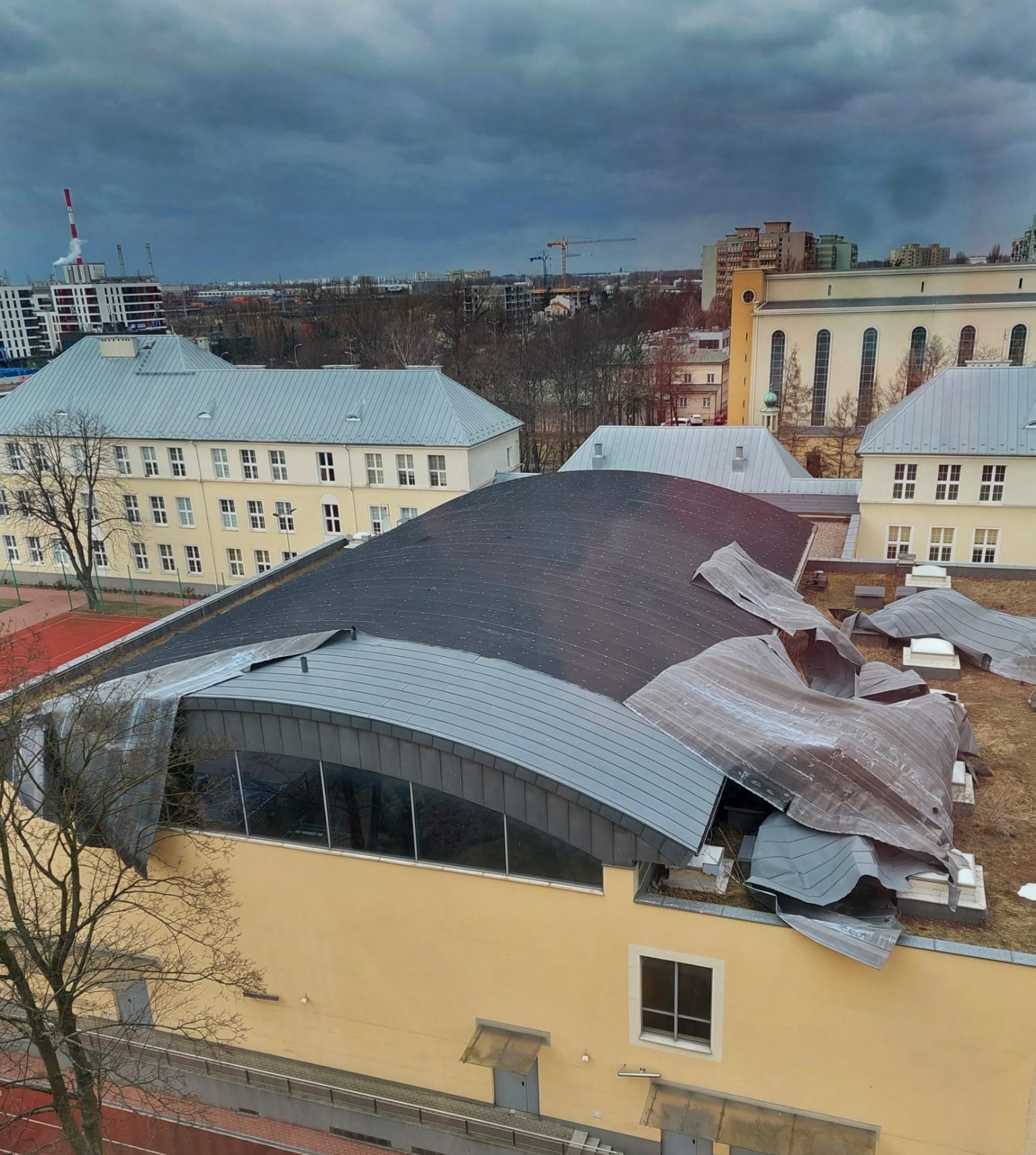 Zerwany dach szkoły na Bródnie
