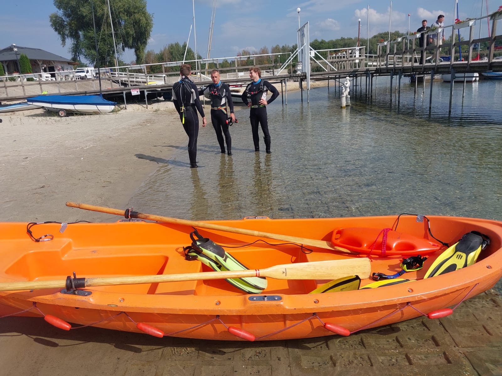 W konkurencji drużynowej trzyosobowe zespoły używając wiosłowej łodzi ratowniczej i sprzętu wodno-nurkowego musiały pokonać szereg zadań ratownictwa wodnego specjalistycznego.