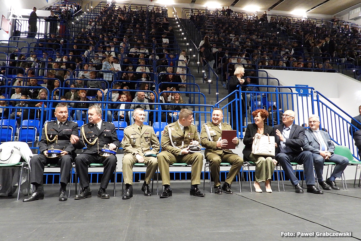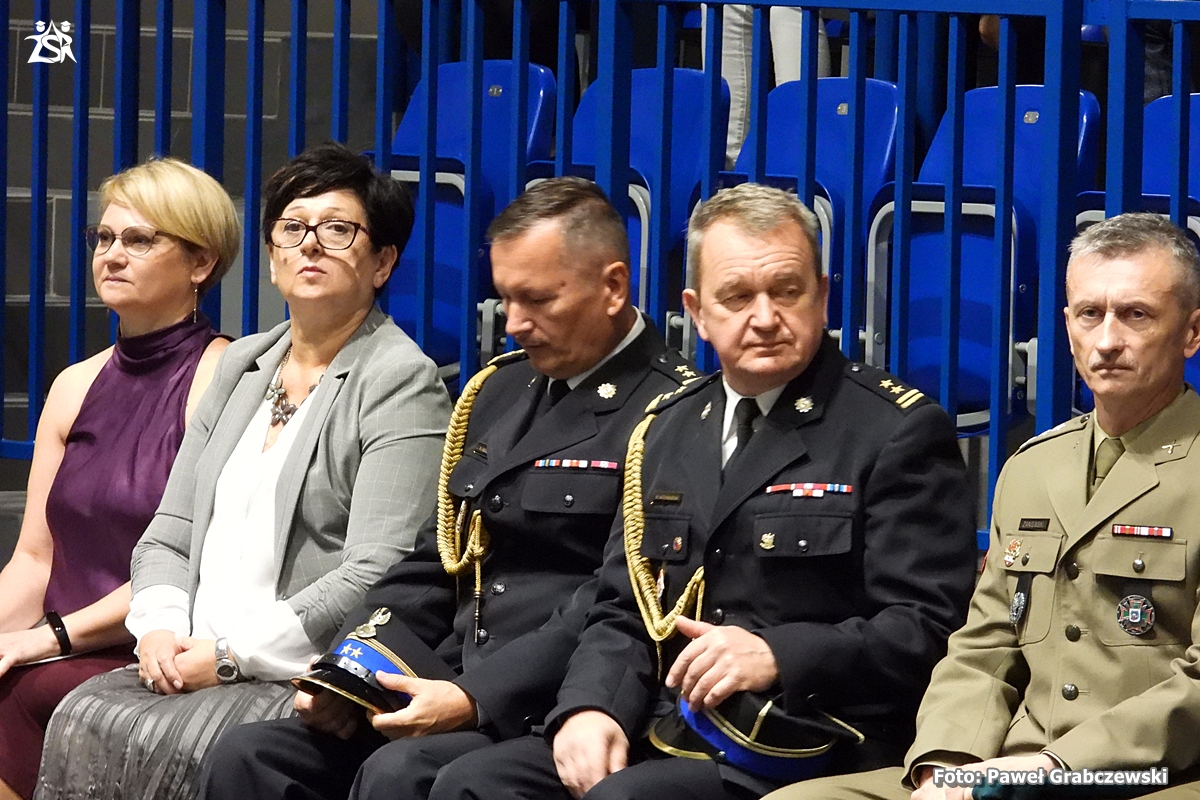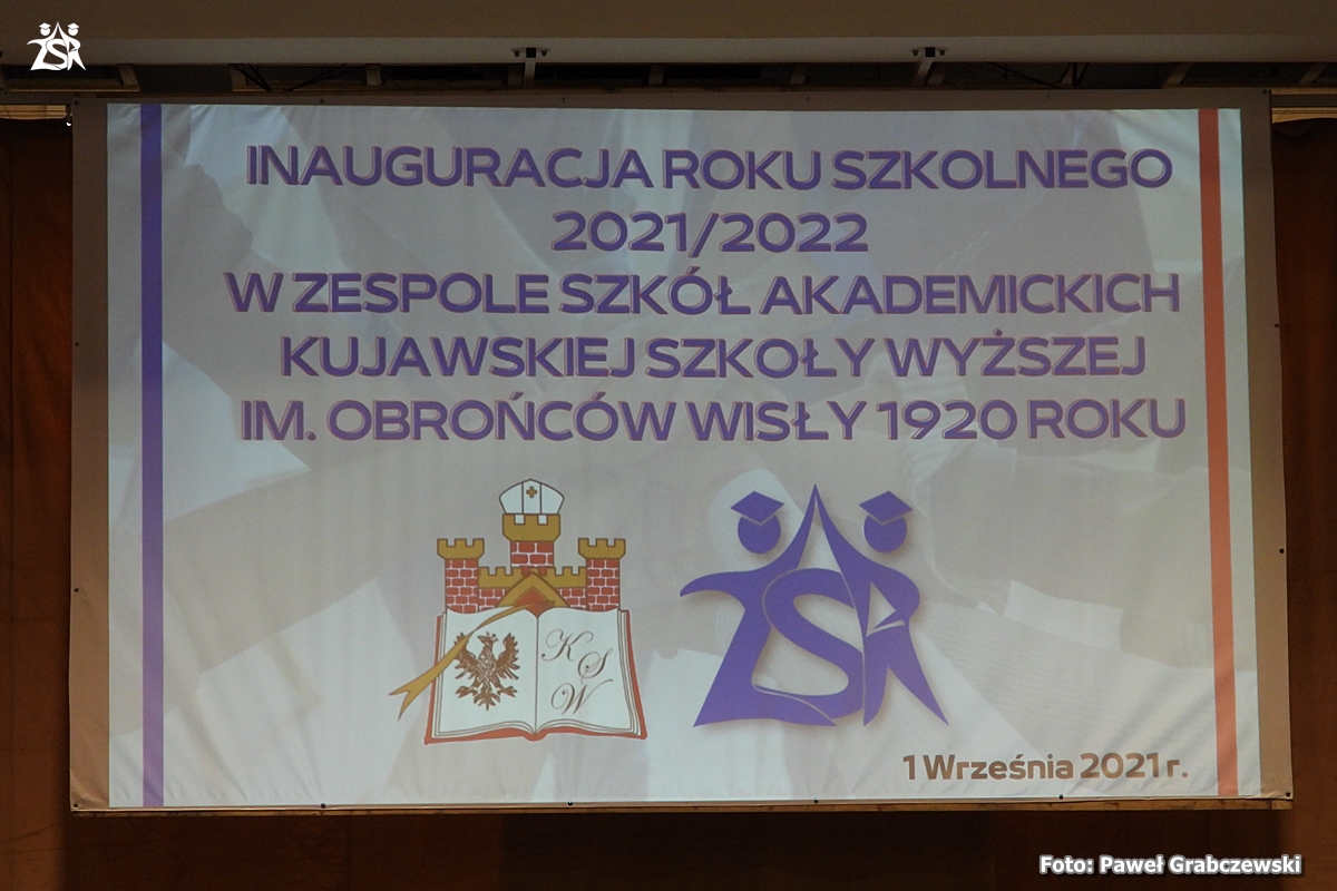 Wcześniej o godz. 9:00 bryg. Maciej Krzemkowski Komendant Miejski PSP oraz Dowódca Jednostki Ratowniczo-Gaśniczej nr 1 bryg. Dariusz Krysiński wzięli udział w uroczystej inauguracji roku szkolnego 2021/2022 Zespołu Szkół Akademickich Kujawskiej Szkoły Wyższej im. Obrońców Wisły 1920 roku, która odbyła się w Hali Sportowej OSiR przy ul. Chopina 12 we Włocławku.