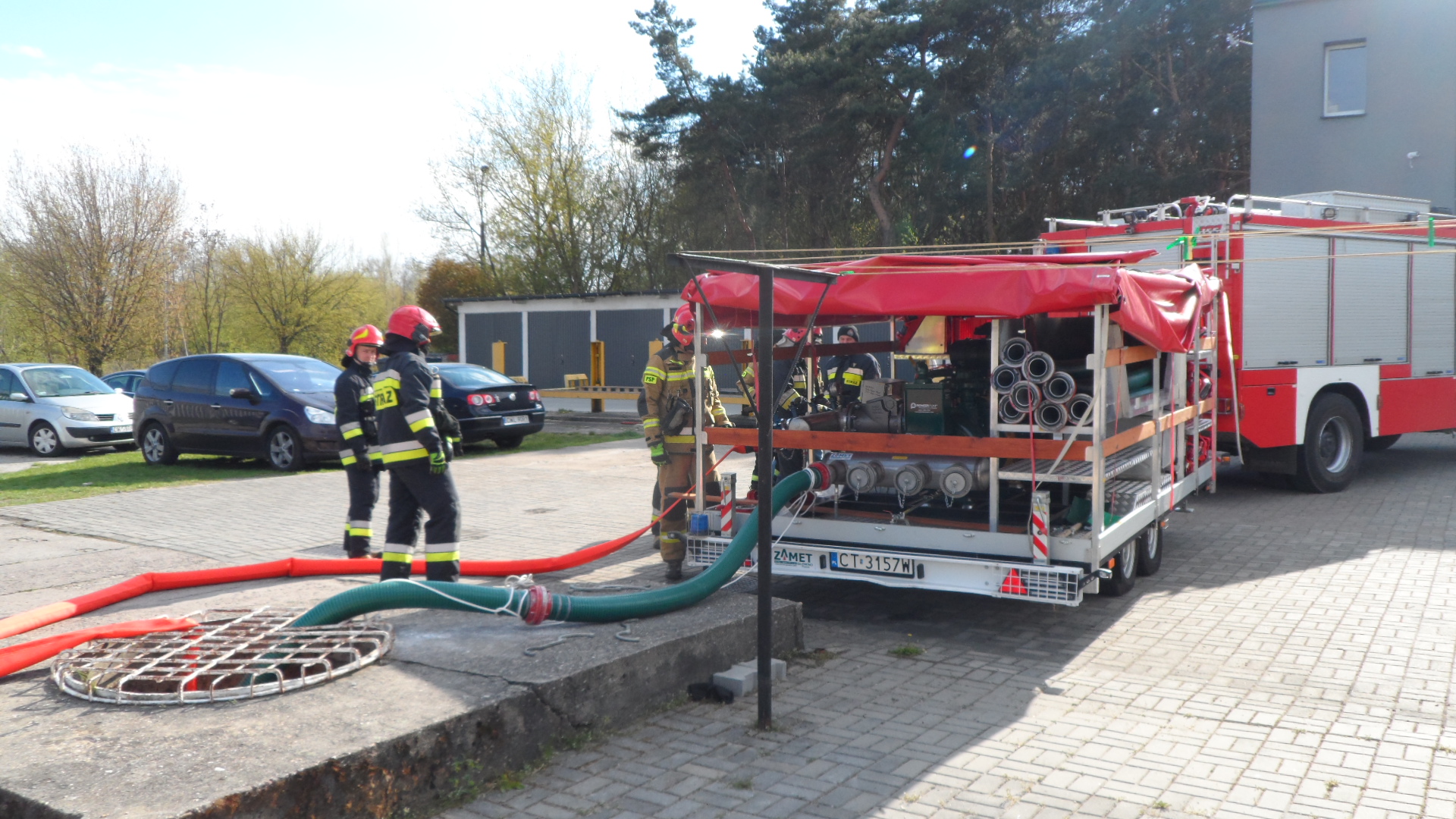 W dniach 4, 5 i 6 maja 2021 roku w ramach doskonalenia zawodowego przeprowadzono ćwiczenia z obsługi zestawu pompowego P77/2, wchodzącego w skład modułu HCP "Kopernik" dla strażaków z Jednostki Ratowniczo-Gaśniczej nr 1.