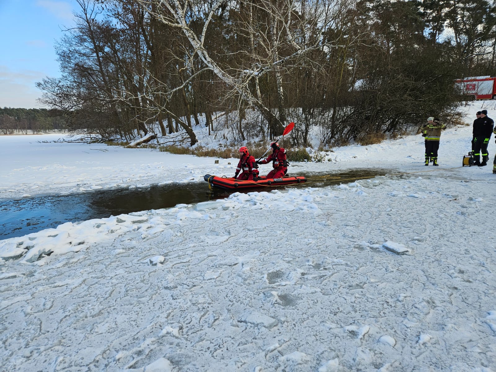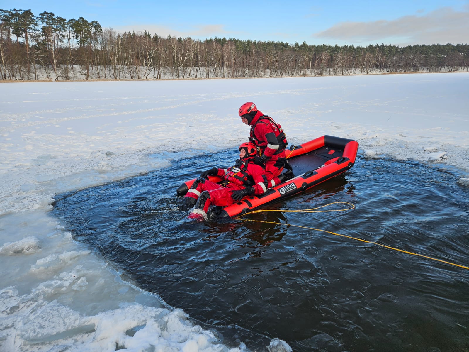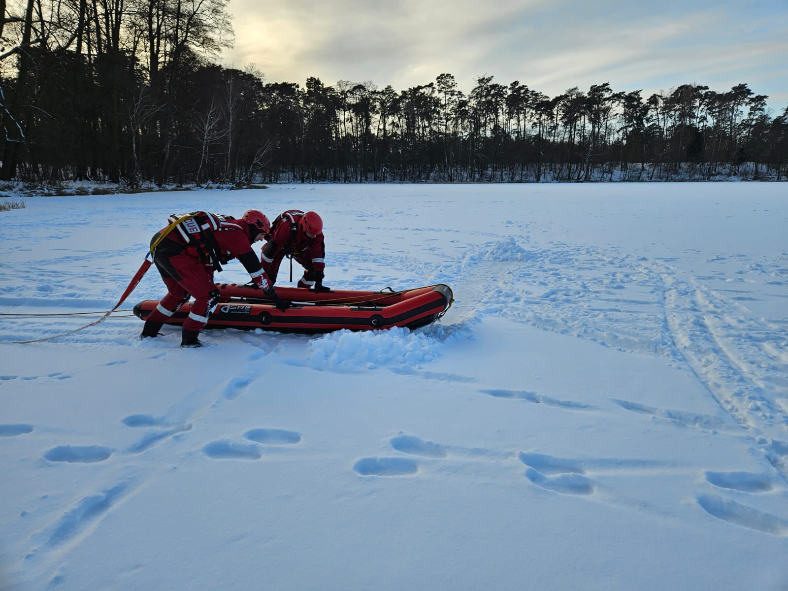 W dniach 12 - 15 stycznia 2026 roku strażacy z Jednostki Ratowniczo-Gaśniczej nr 1 nad jeziorem Czarnym przerowadzili ćwiczenia z ratownictwa lodowego.