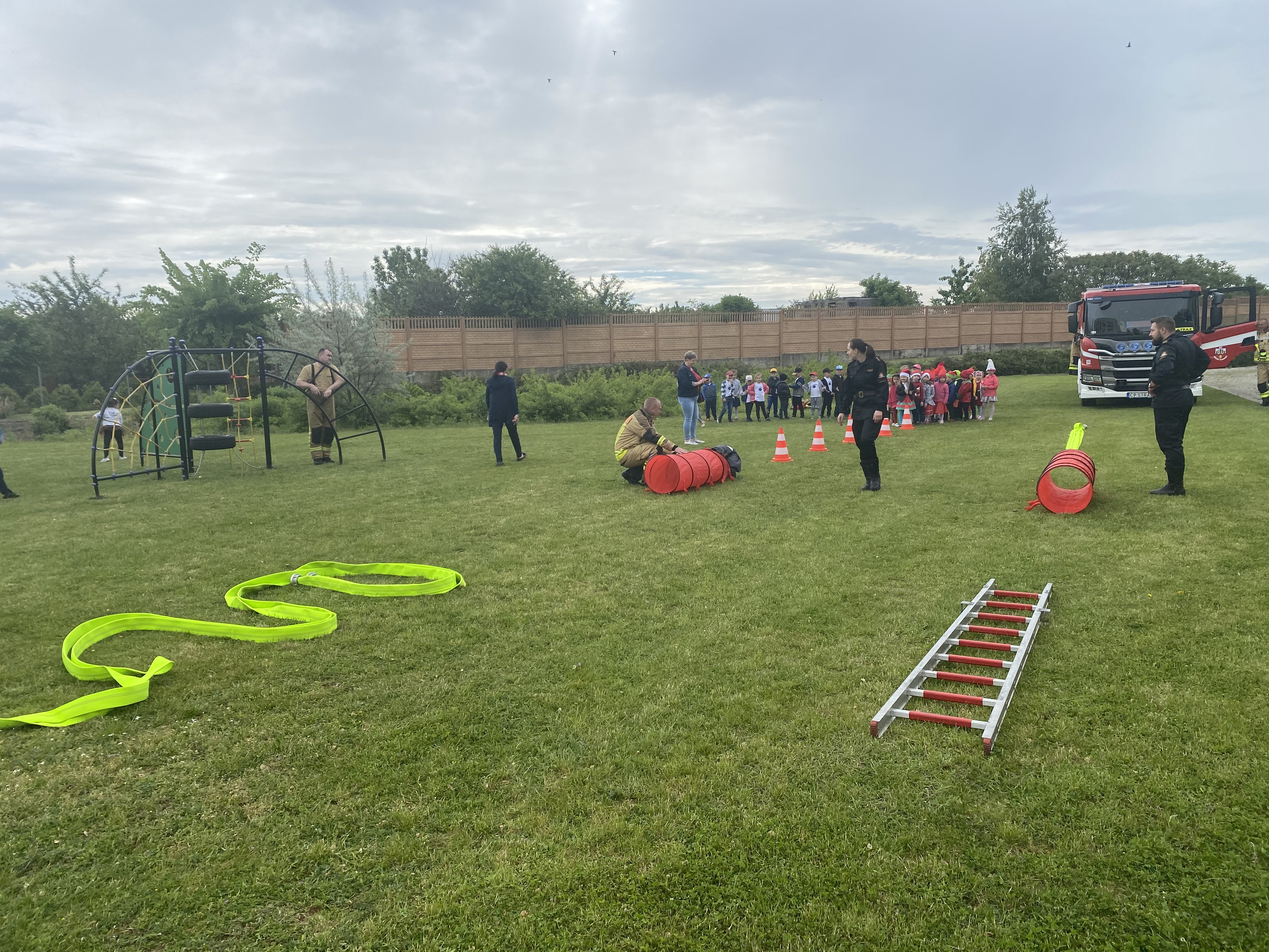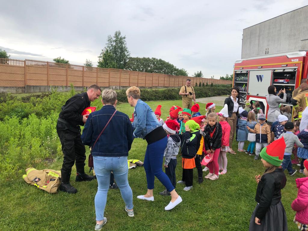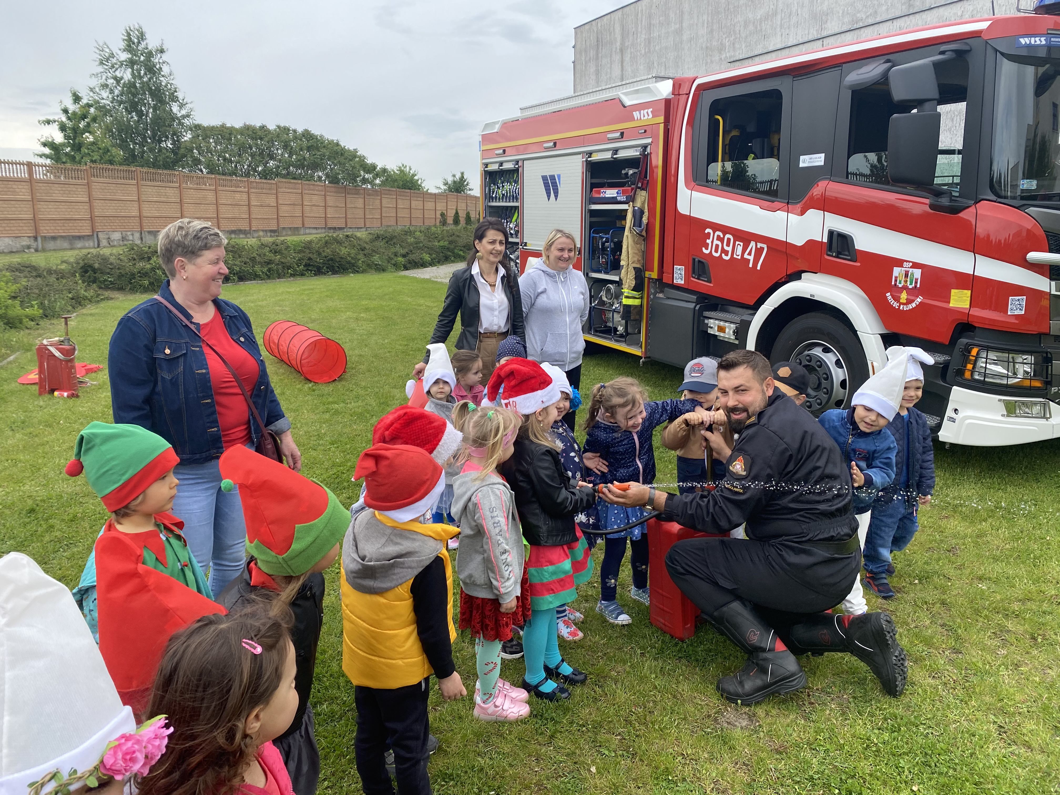 Każdy z przedszkolaków mógł obejrzeć wnętrze samochodu pożarniczego, podać prąd wody z hydronetki oraz przymierzyć ubranie strażaka. Strażacy zorganizowali również tor przeszkód, który spotkał się z ogromnym zainteresowaniem dzieci.