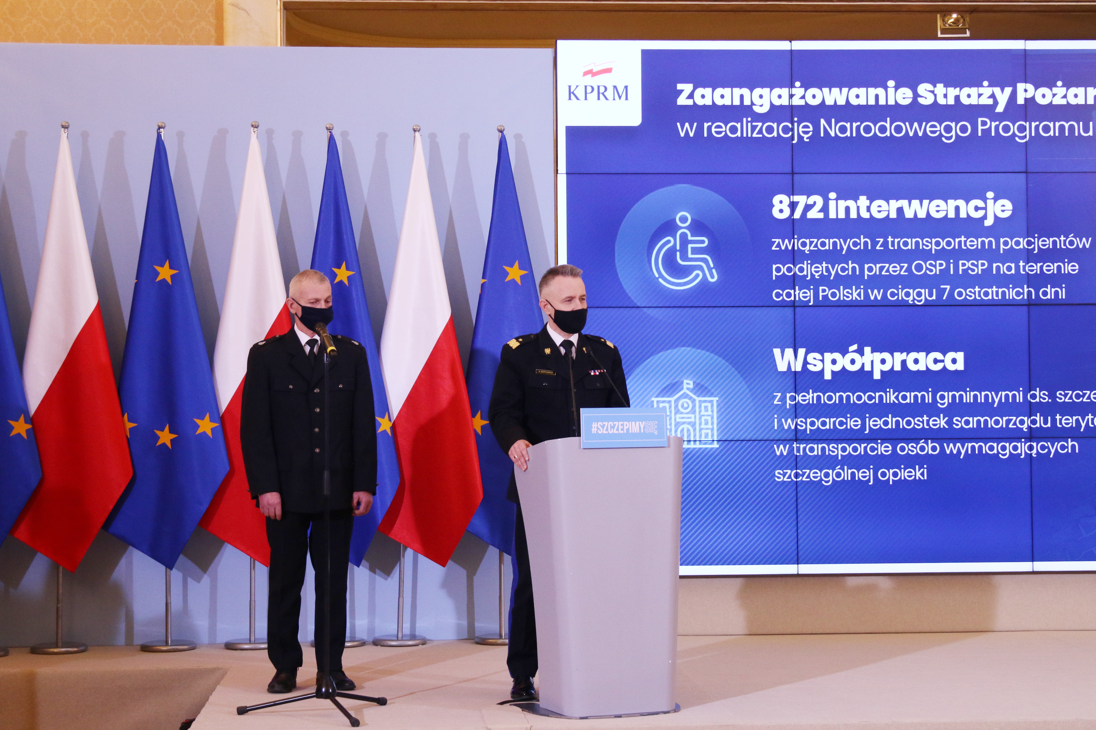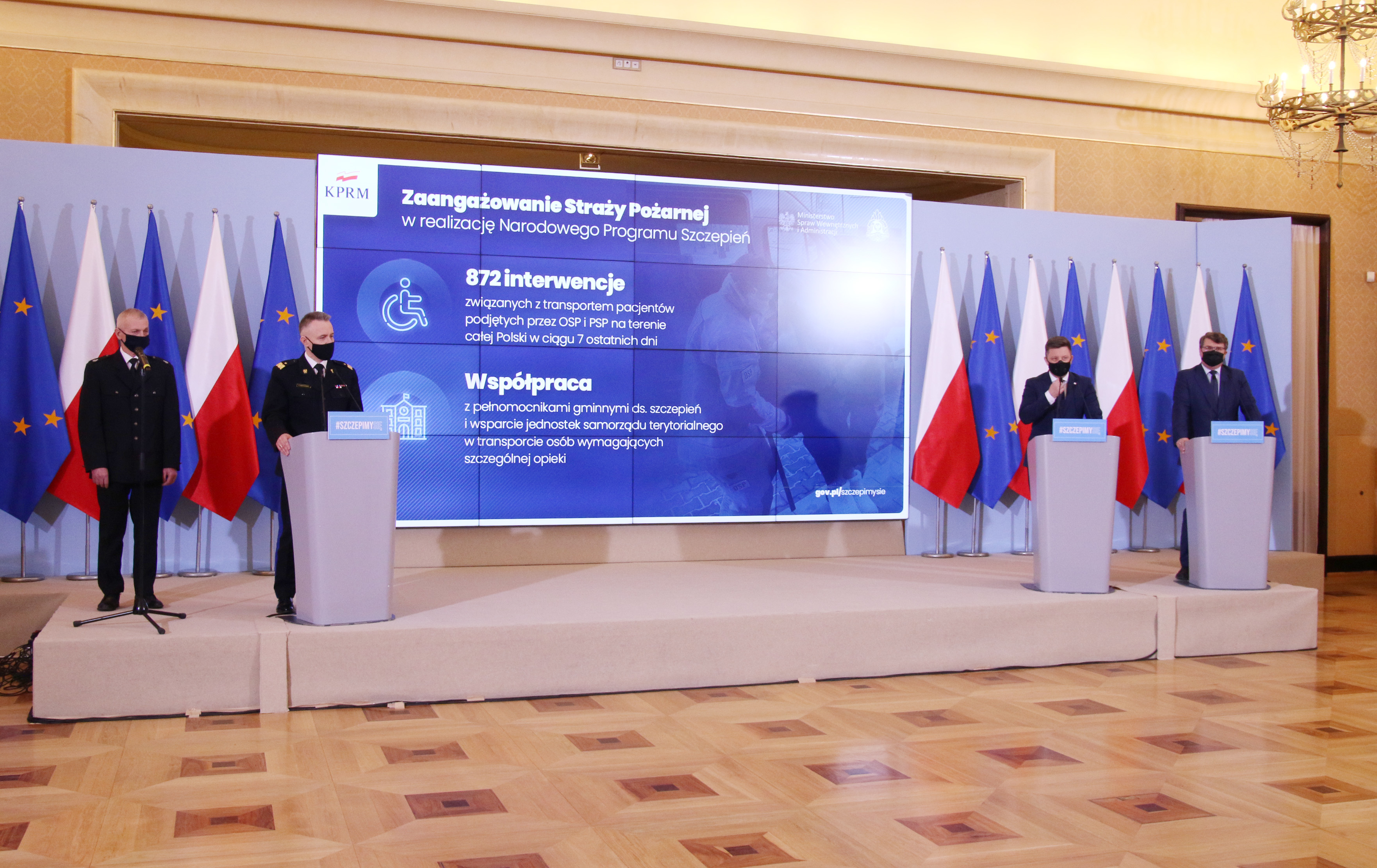 Szef KPRM Michał Dworczyk powiedział na konferencji: „Bez zaangażowania tysięcy osób dobrej woli, strażaków, druhów i druhen oraz bez wsparcia MSWiA realizacja Narodowego Programu Szczepień byłaby niemożliwa”.