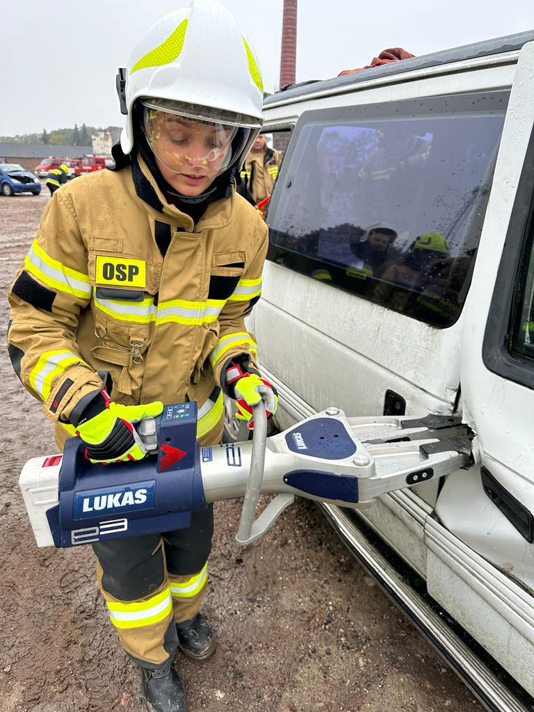 Przedstawicielowi firmy "Fire Max" p. Violetcie Jankowskiej serdecznie dziękujemy z użyczenie hydraulicznych narzędzi akumulatorowych "Lucas".