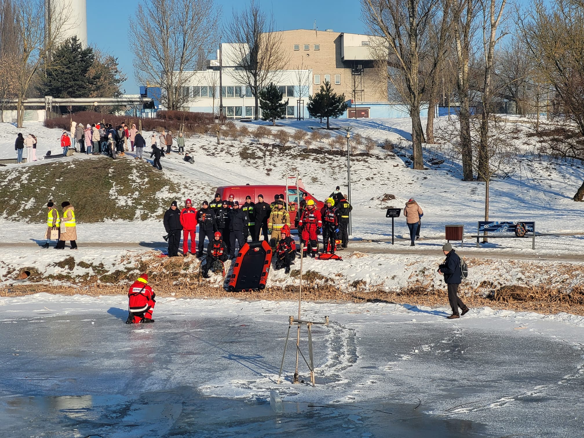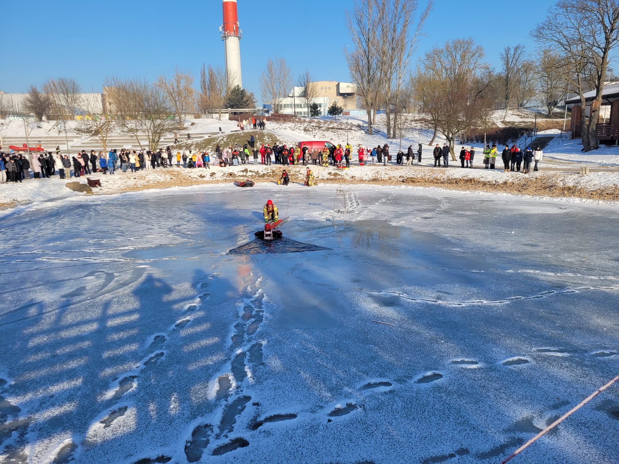 z udziałem Policji, Państwowej Straży Pożarnej oraz WOPR-u. W godzinach 10:00–12:00 mieszkańcy mogli zobaczyć , jak wygląda profesjonalna akcja ratowania osoby, pod którą załamał się lód.