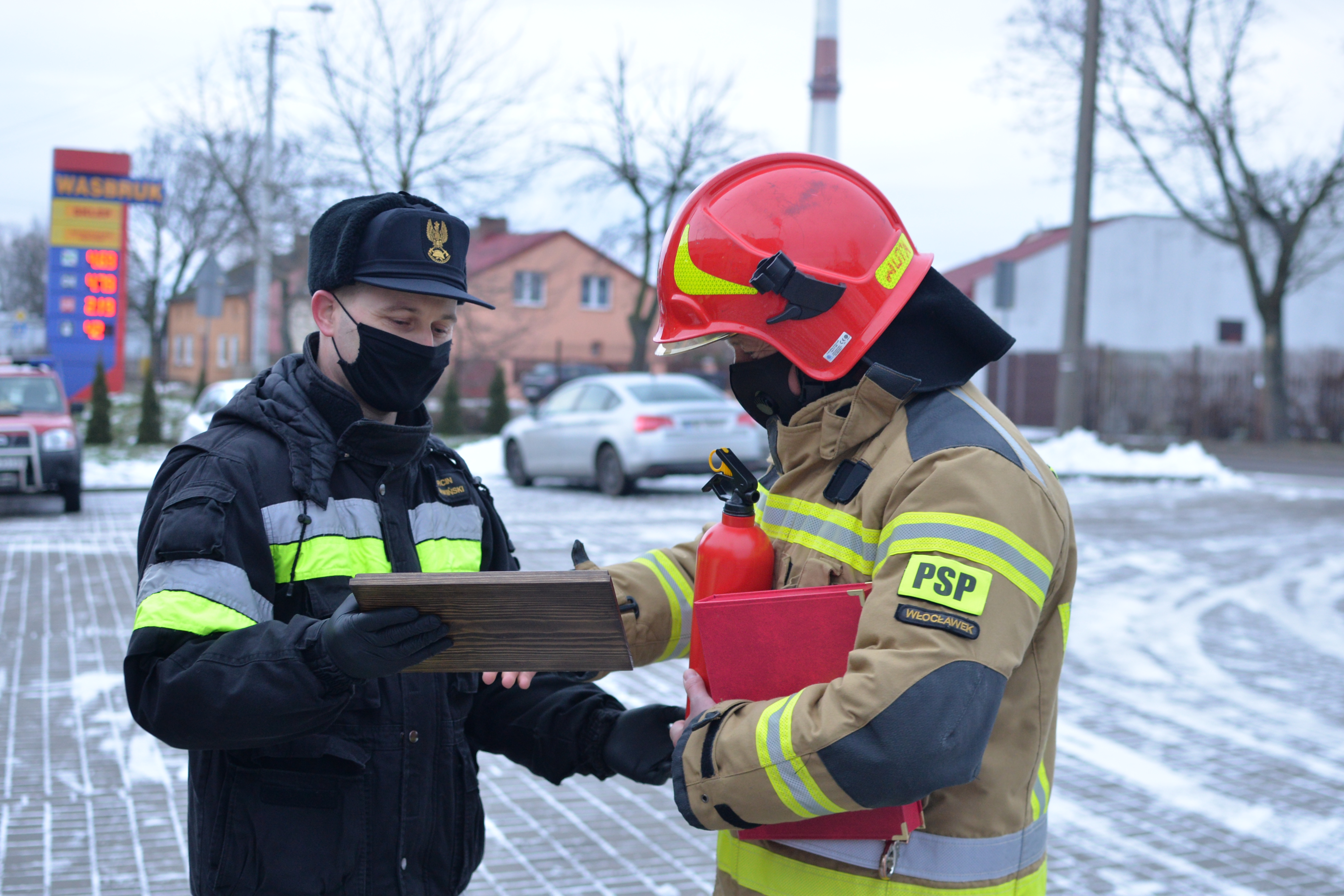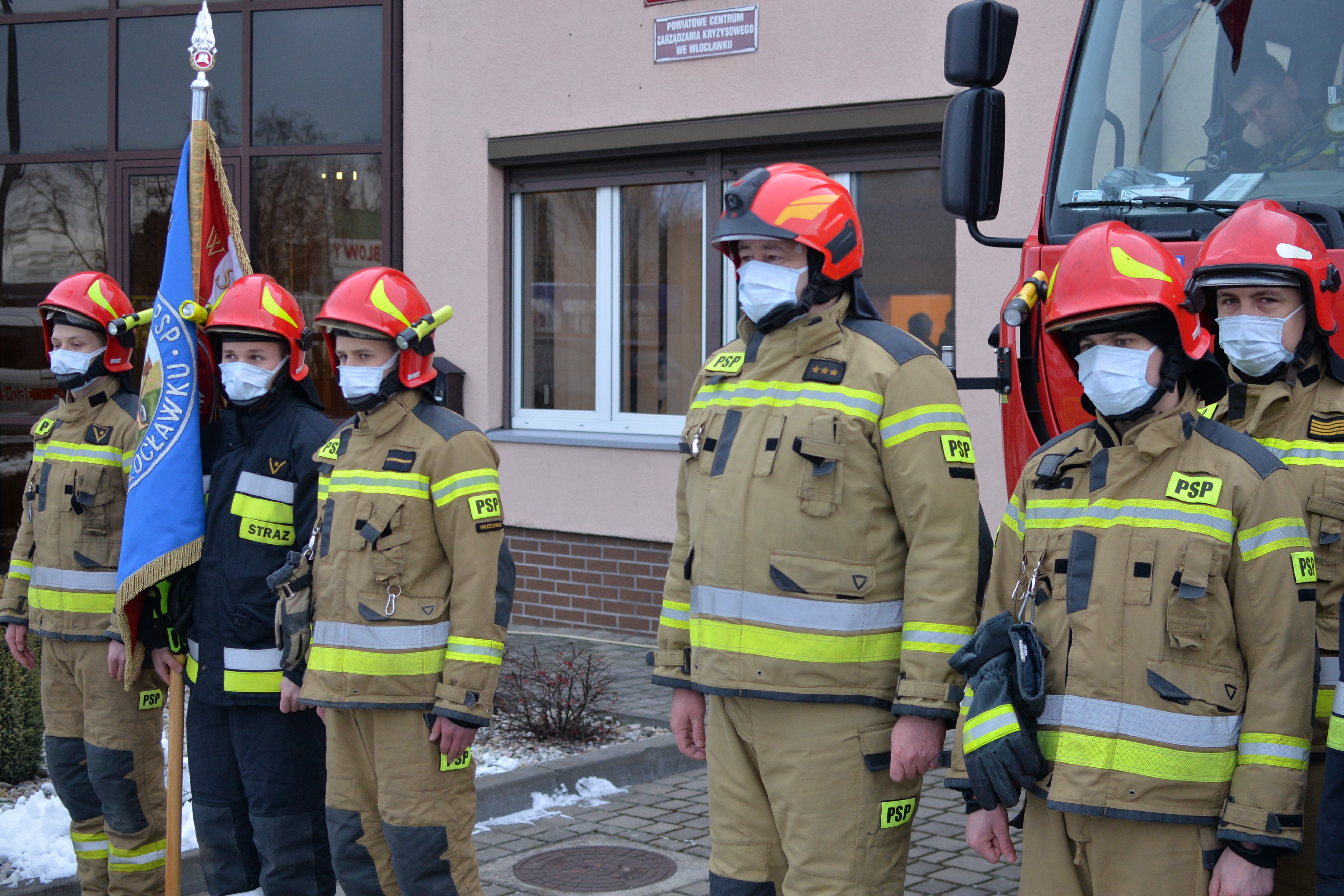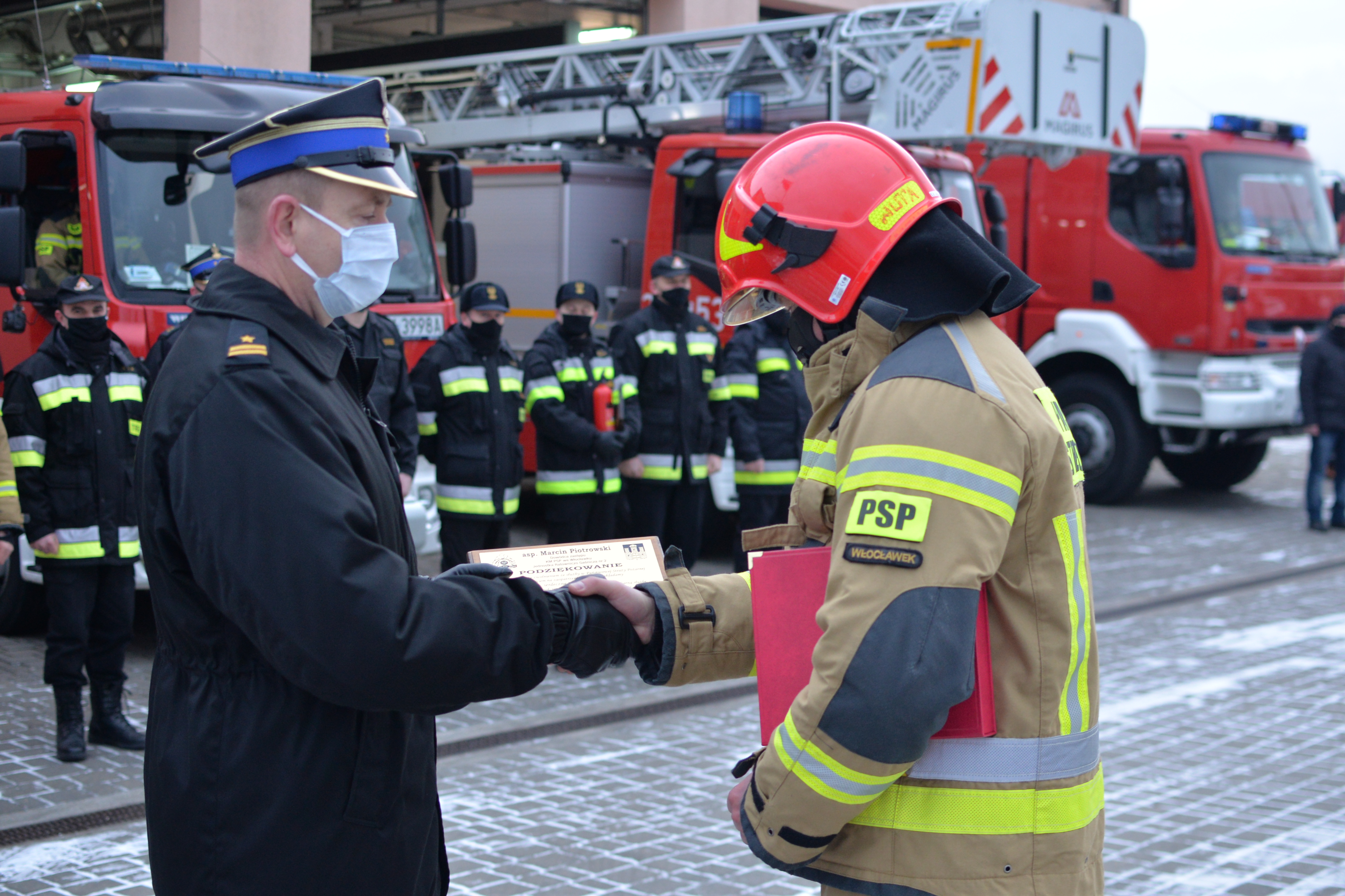 Podczas zmiany służby w Jednostce Ratowniczo-Gaśniczej nr 2 st.bryg. Adam Dominikowski - komendant miejski PSP i strażacy z Komendy Miejskiej PSP we Włocławku pożegnali odchodzącego na zaopatrzenie emerytalne strażaka asp. Marcina Piotrowskiego - dowódcę zastępu w JRG 2