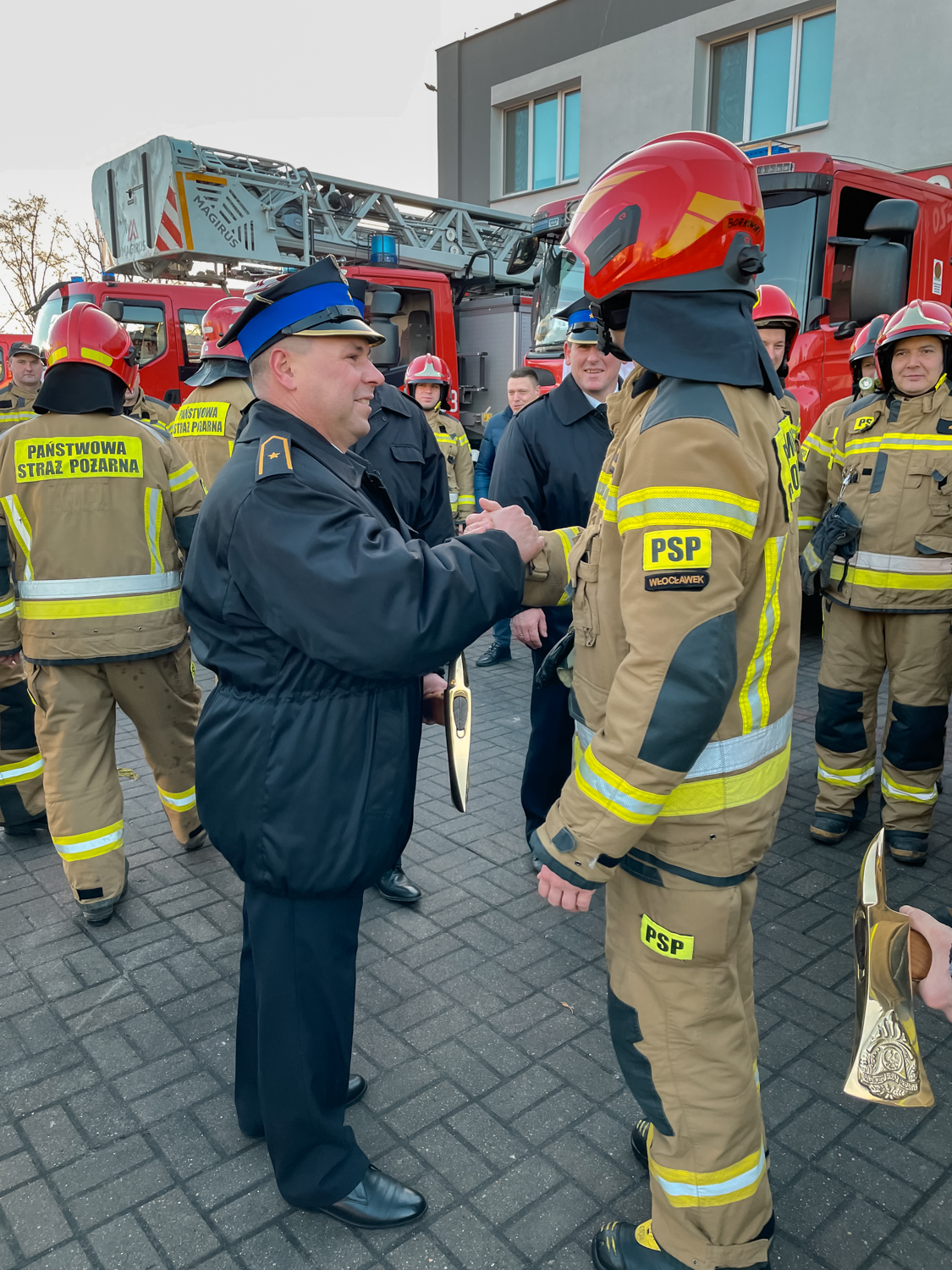 Podczas zmian służby w Jednostkach Ratowniczo-Gaśniczych nr 1 i nr 2 bryg. Maciej Krzemkowski - komendant miejski i strażacy z Komendy Miejskiej PSP we Włocławku pożegnali odchodzących na zaopatrzenie emerytalne strażaków: