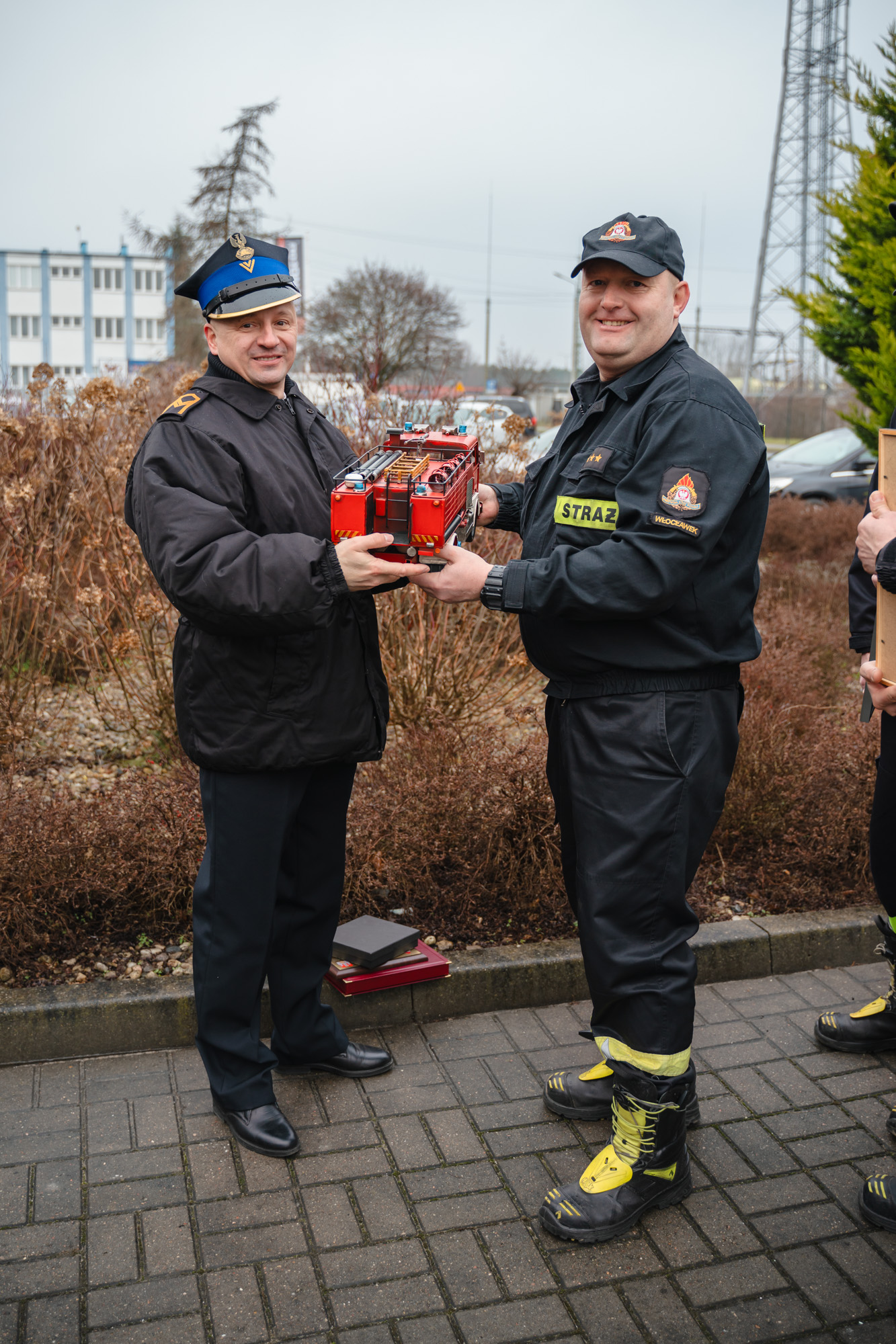 Podczas zmiany służby w Jednostce Ratowniczo-Gaśniczej nr 1 Komendant Miejski PSP st. bryg. Maciej Krzemkowski i strażacy z Komendy Miejskiej PSP we Włocławku pożegnali odchodzących na zaopatrzenie emerytalne strażaków: