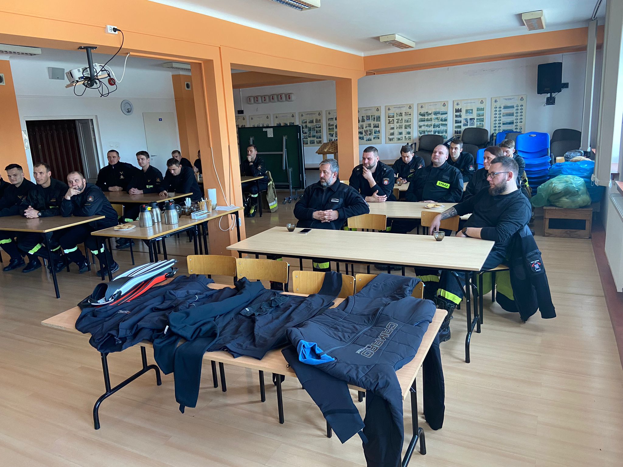 W dniu 26 listopada 2023 roku w Komendzie Miejskiej PSP we Włocławku odbyła się prezentacja sprzętu z zakresu ratownictwa wodnego przeprowadzona przez p. Tadeusza Stryjeckiego z firmy Nur-Tech.