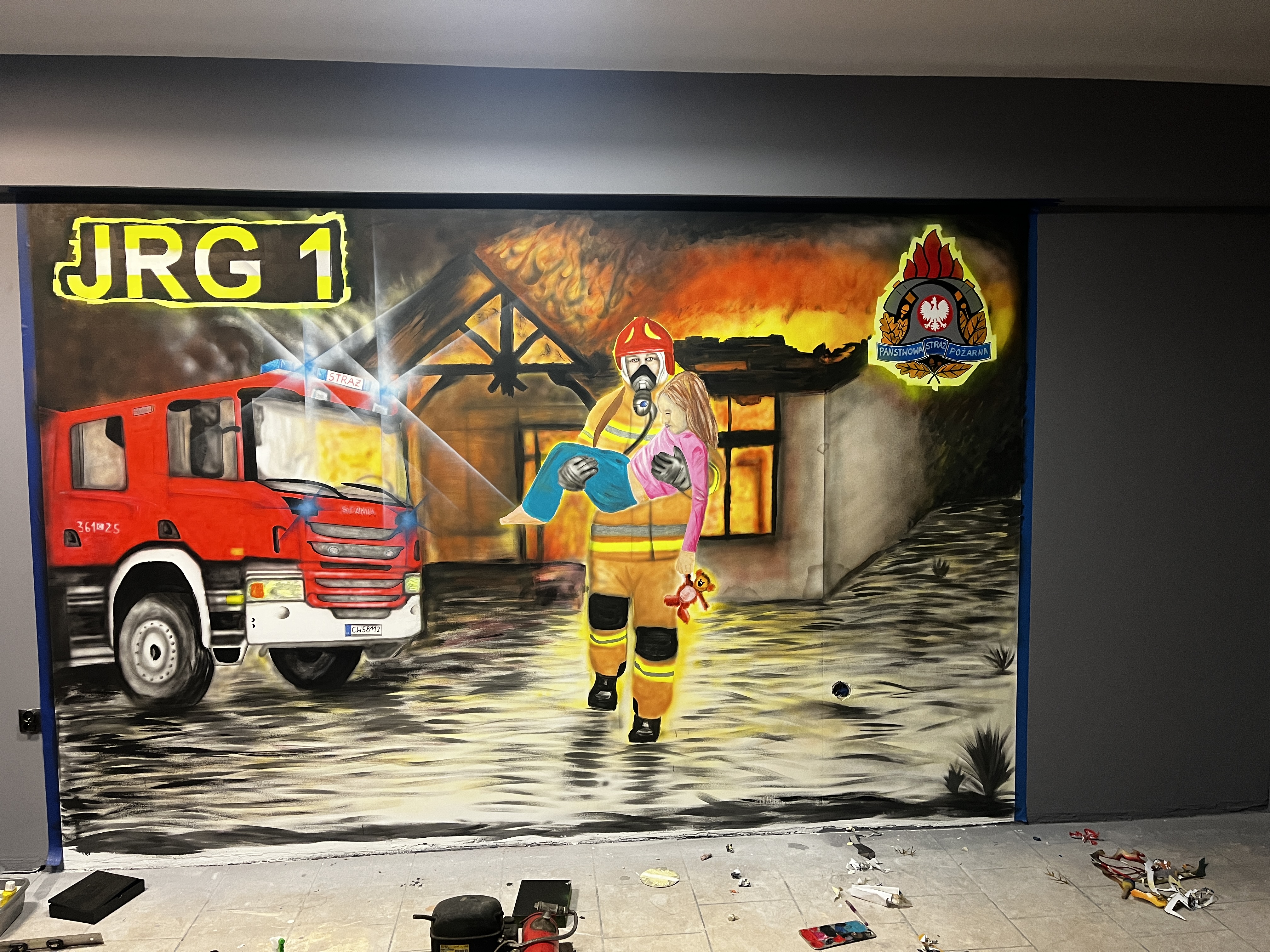 Wykonanie muralu na ścianie siłowni: Pan Arkadiusz Gibert.