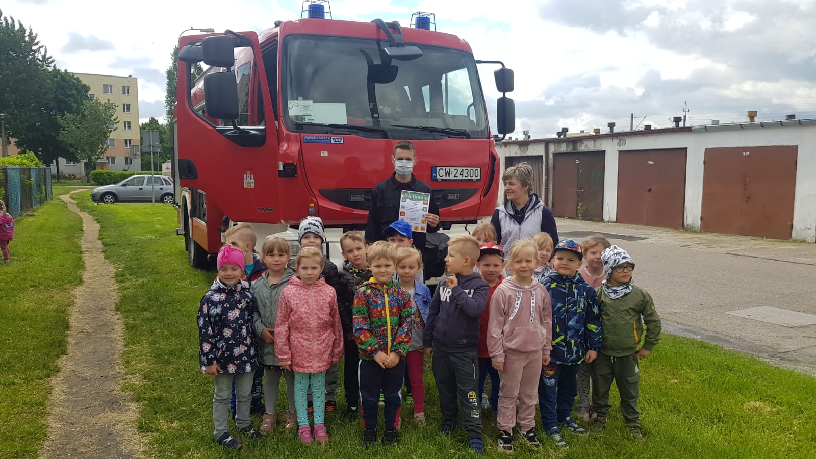 W dniu 26 maja 2021 roku w ramach akcji "Kręci mnie bezpieczeństwo przez cały rok szkolny" strażacy z Komendy Miejskiej PSP we Włocławku odwiedzili dzieci z Przedszkola Publicznego nr 22 im. Krasnala Hałabały we Włoclawku.