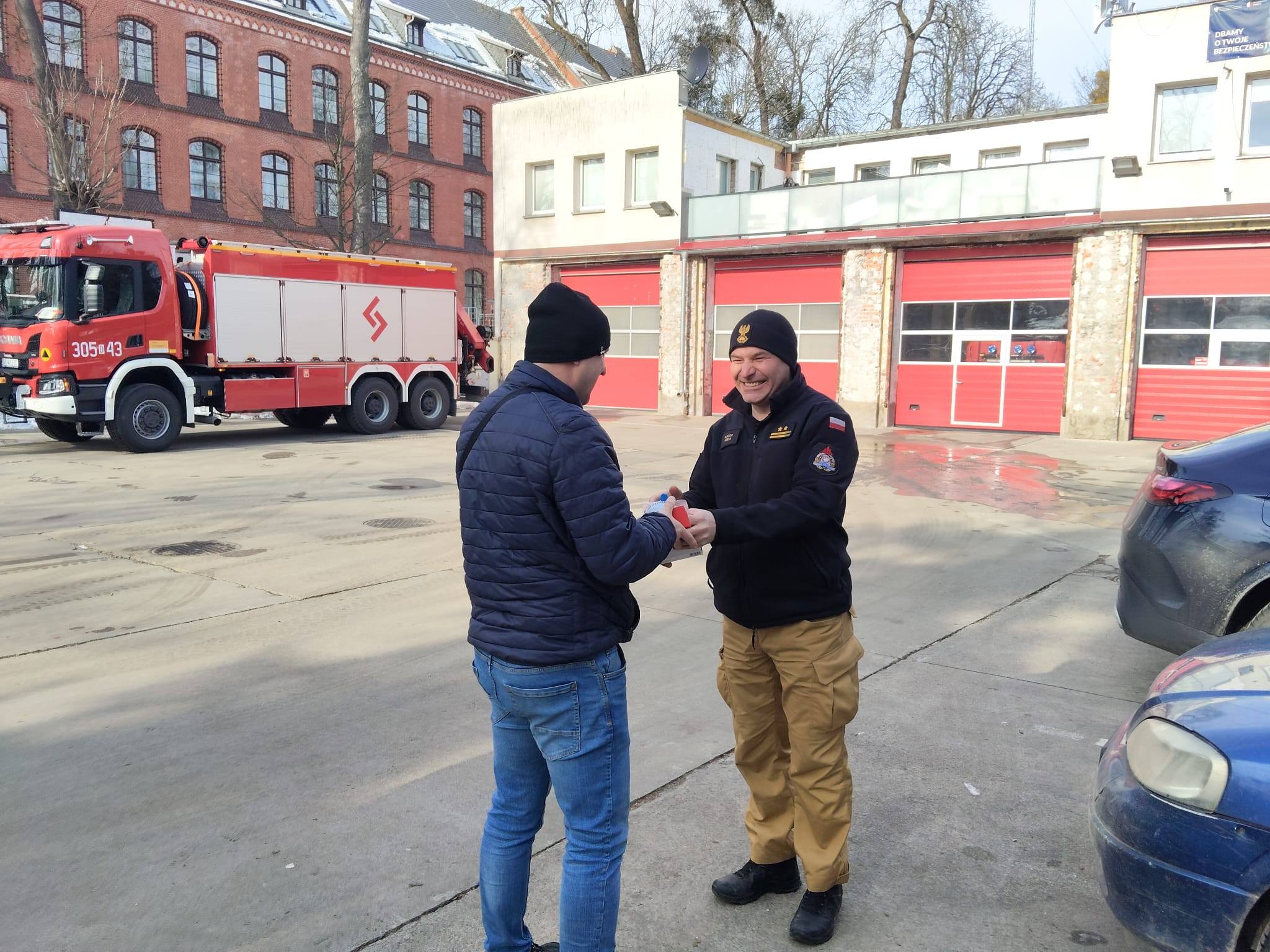strażacy przygotowali akcję informacyjną dotyczącą czujek dymu i tlenku węgla. Osoby, które pojawiły się w naszych JRG otrzymały czujkę oraz krótki instruktaż dotyczący jej działania a także montażu.
