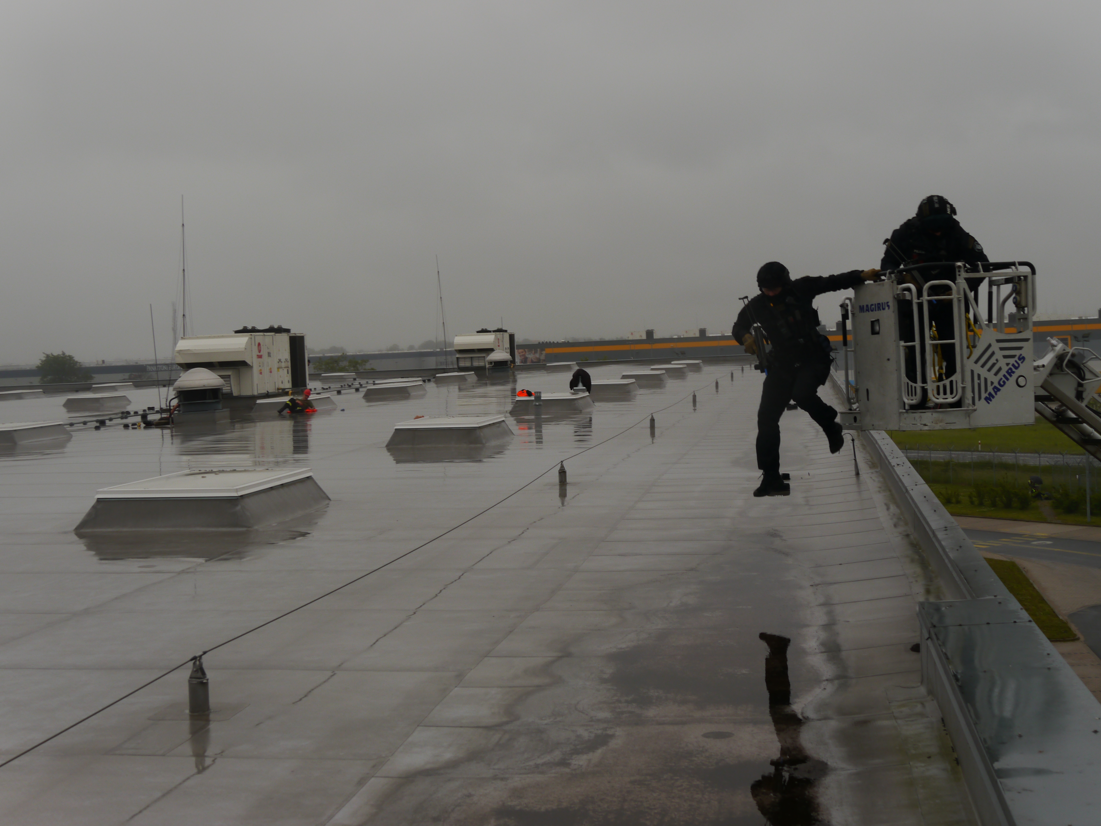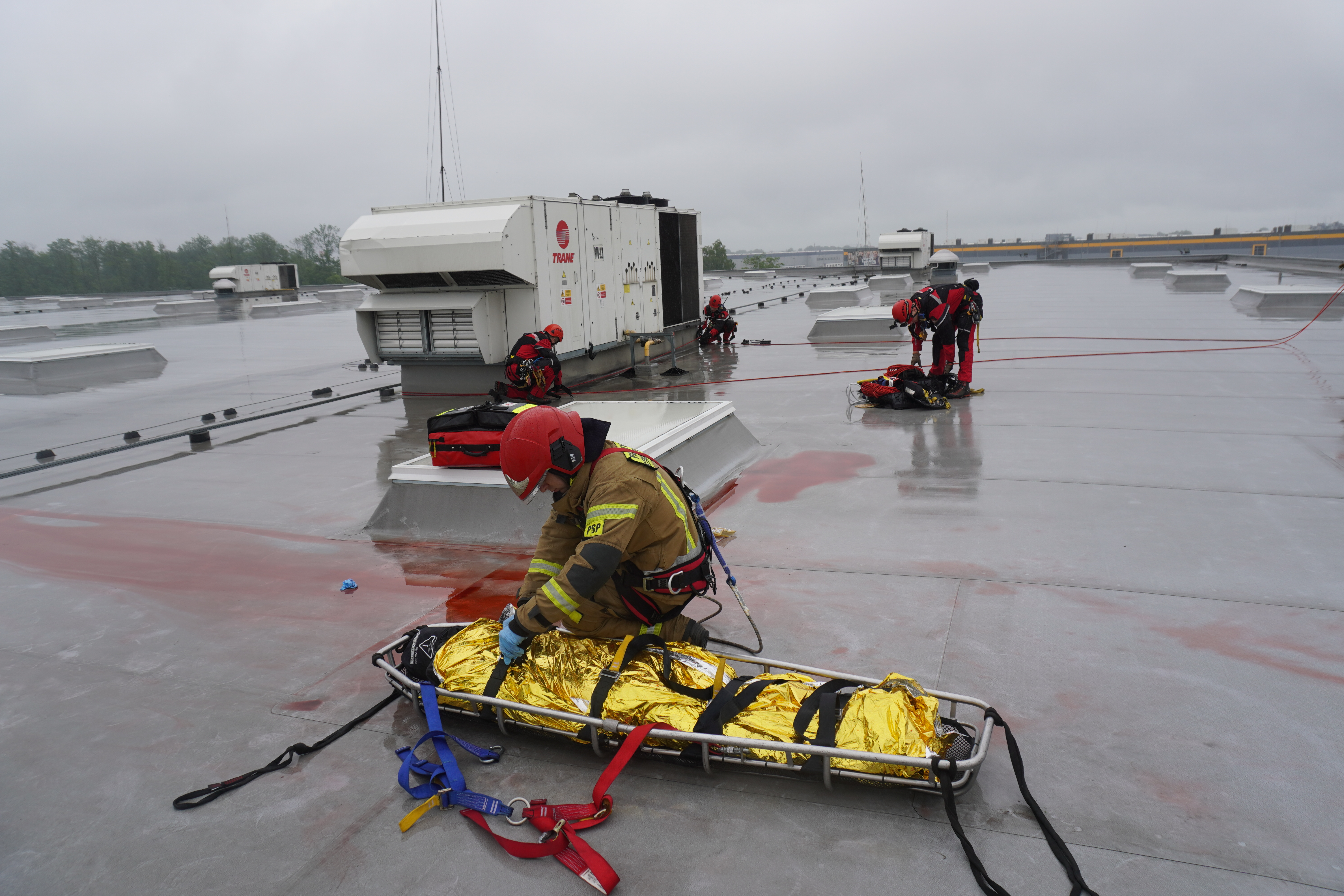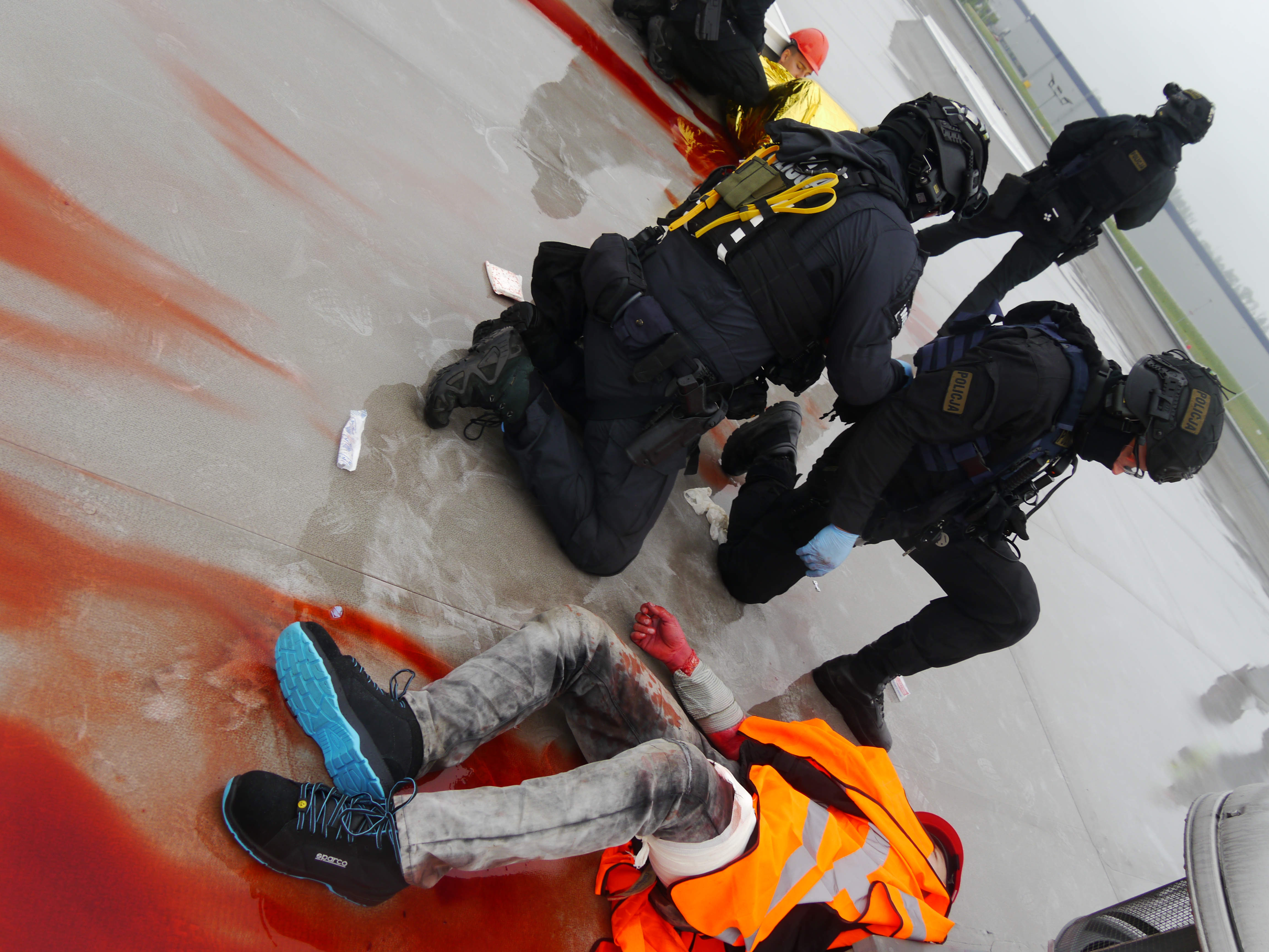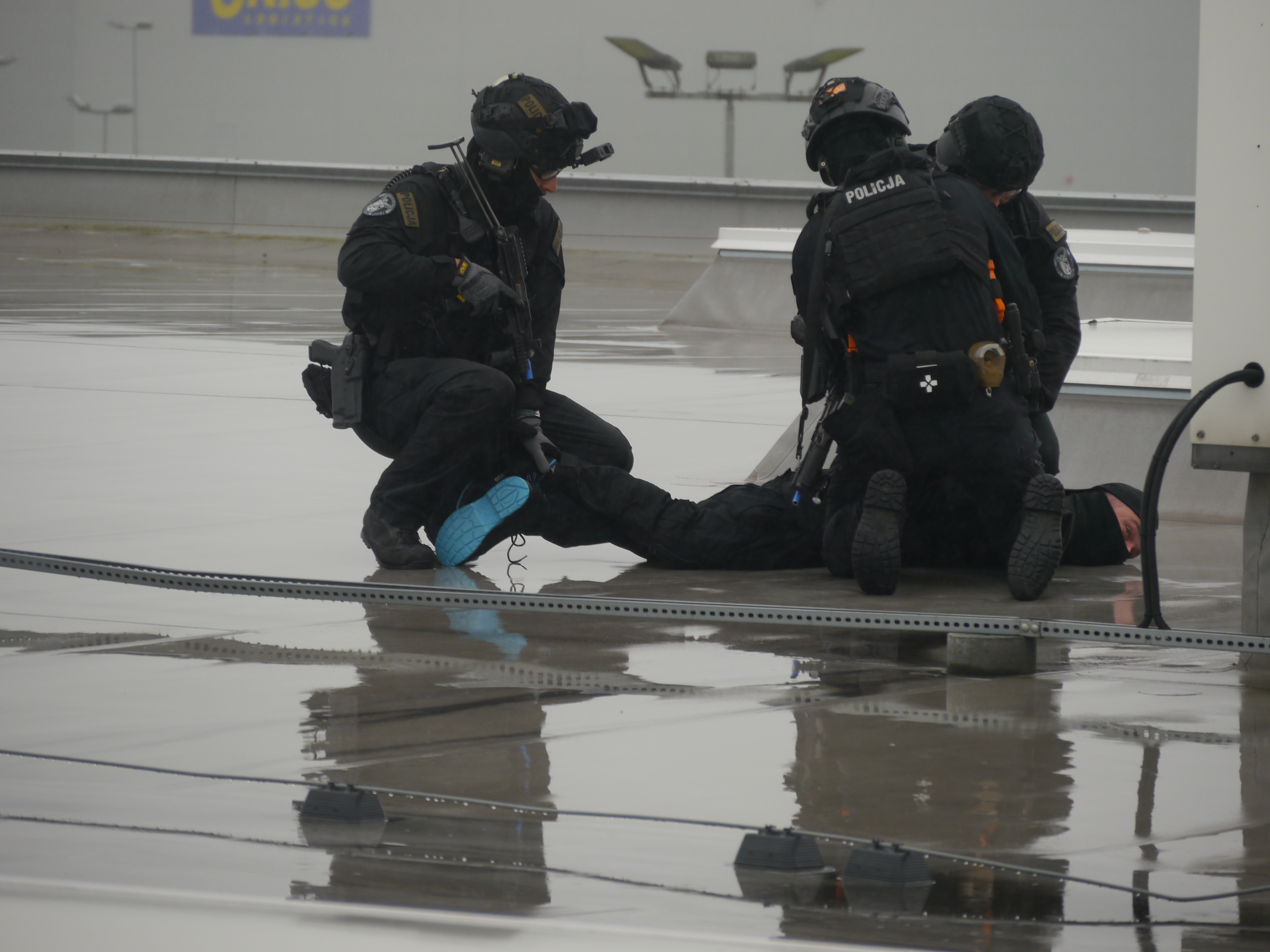W czasie prowadzonej KPP osób poszkodowanych i rozpoznania przez SGRChem doszło do kolejnego incydentu, w którym agresywny mężczyzna poranił nożem dwie osoby znajdujące się na dachu hali. Po obezwładnieniu agresora przez Policjantów i udzieleniu KPP poszkodowanym zaistniała konieczność ewakuacji tych osób z dachu za pomocą technik linowych. Dlatego też KDR podjął decyzję o zadysponowaniu na miejsce zdarzenia SGRW „Wrocław 9”.