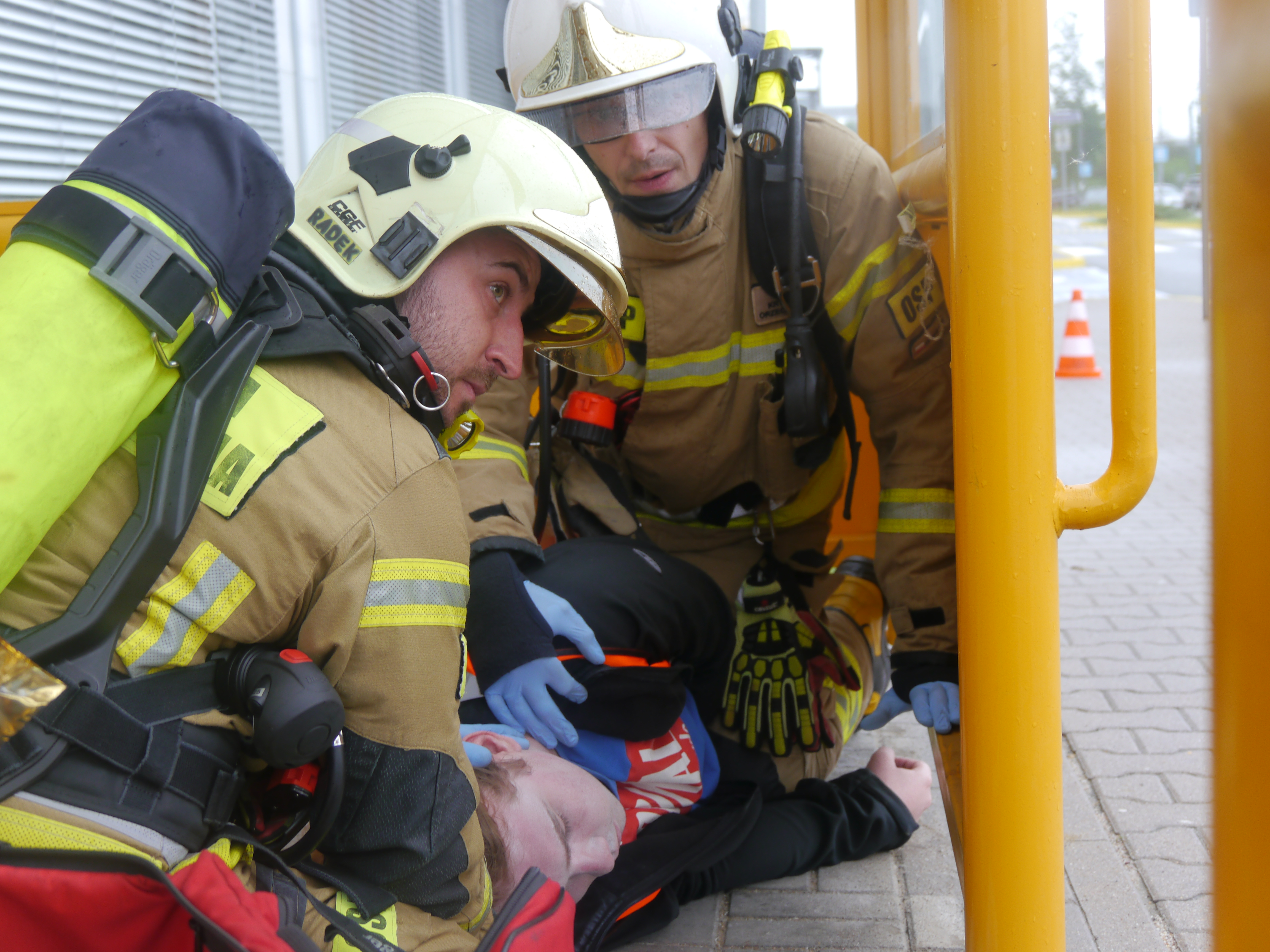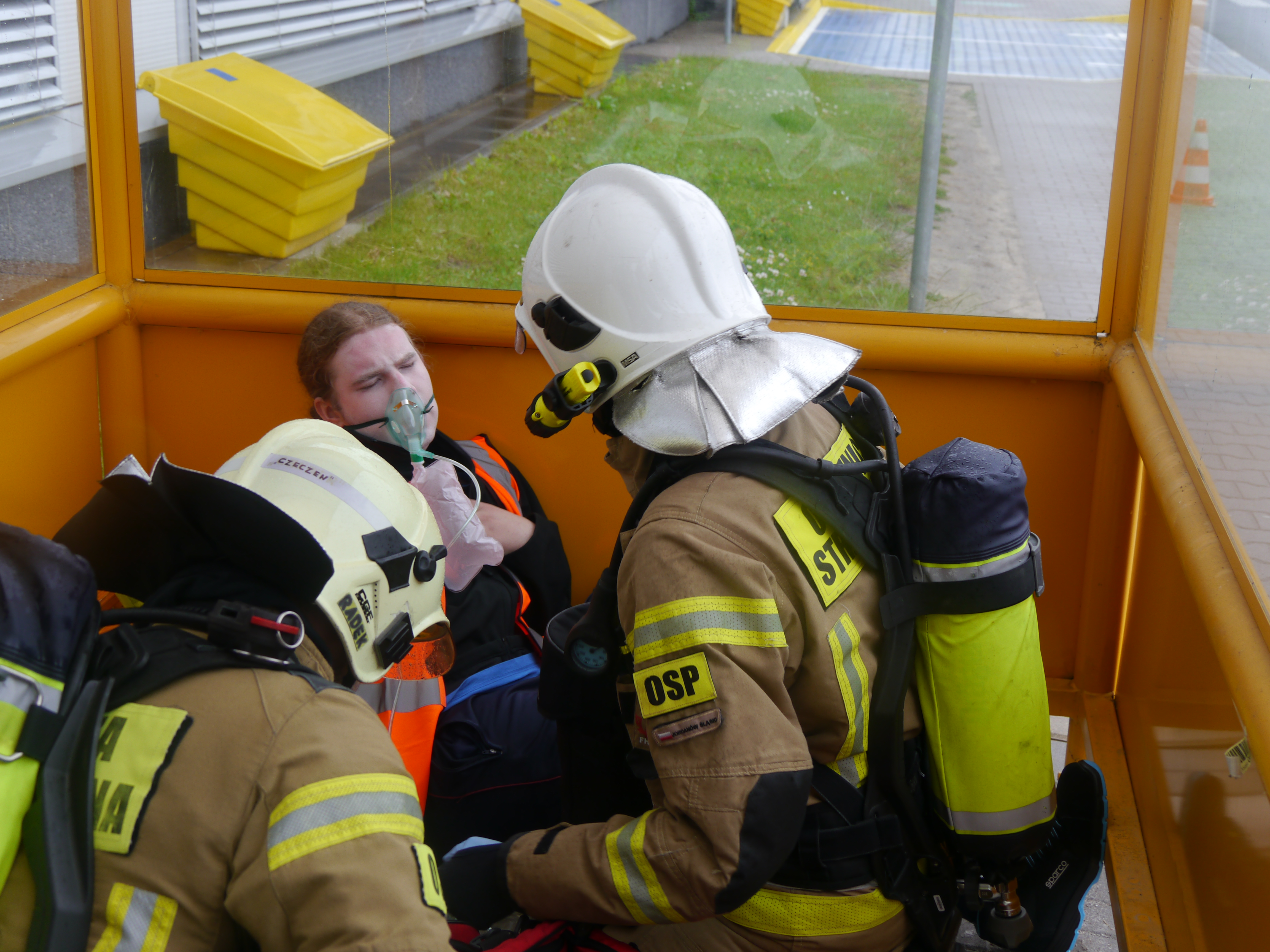 W trakcie składania meldunku przez przedstawiciela zakładu przybyłemu na miejsce zdarzenia Dowódcy zmiany z JRG 4 okazało się, że w punkcie zbiórki do ewakuacji brakuje trzech osób. W wyniku dalszego rozpoznania ustalono, że osoby te zostały poszkodowane podczas ewakuacji pracowników.