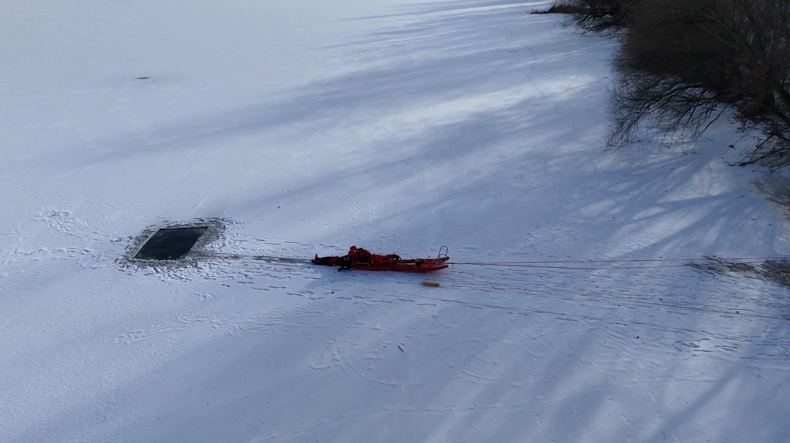 ewakuacji poszkodowanego z przerębla z wykorzystaniem sani lodowych oraz metod alternatywnych,