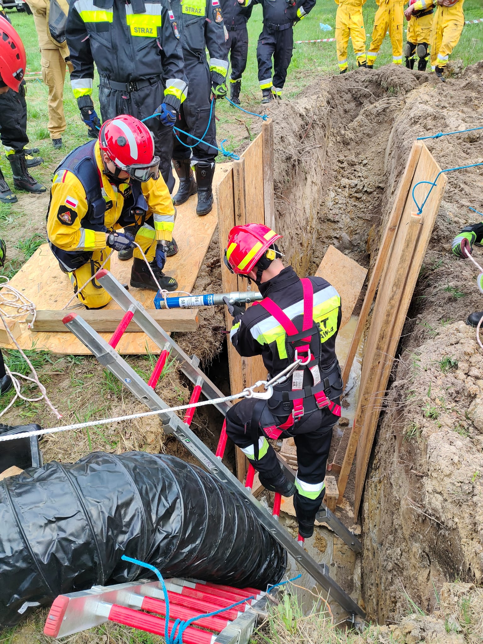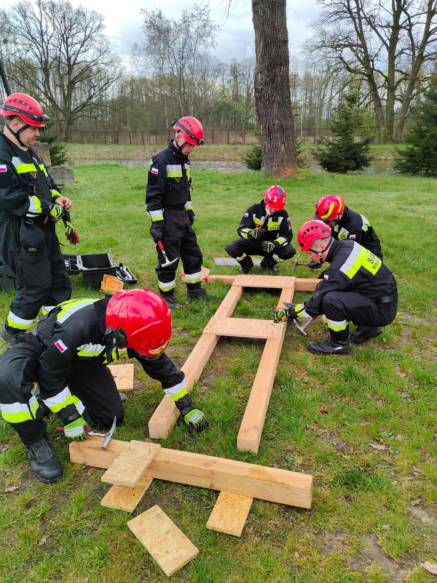 Drugi dzień ćwiczeń obejmował część teoretyczną oraz praktyczną. Podczas części praktycznej na 3 stanowiskach doskonalono umiejętności z zakresu stabilizacji naruszonych konstrukcji.