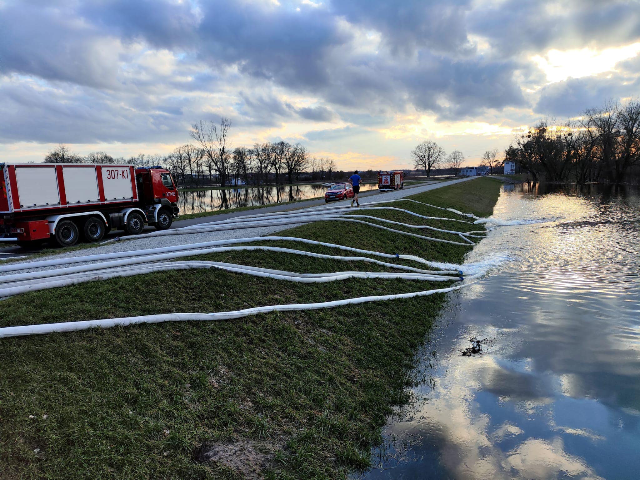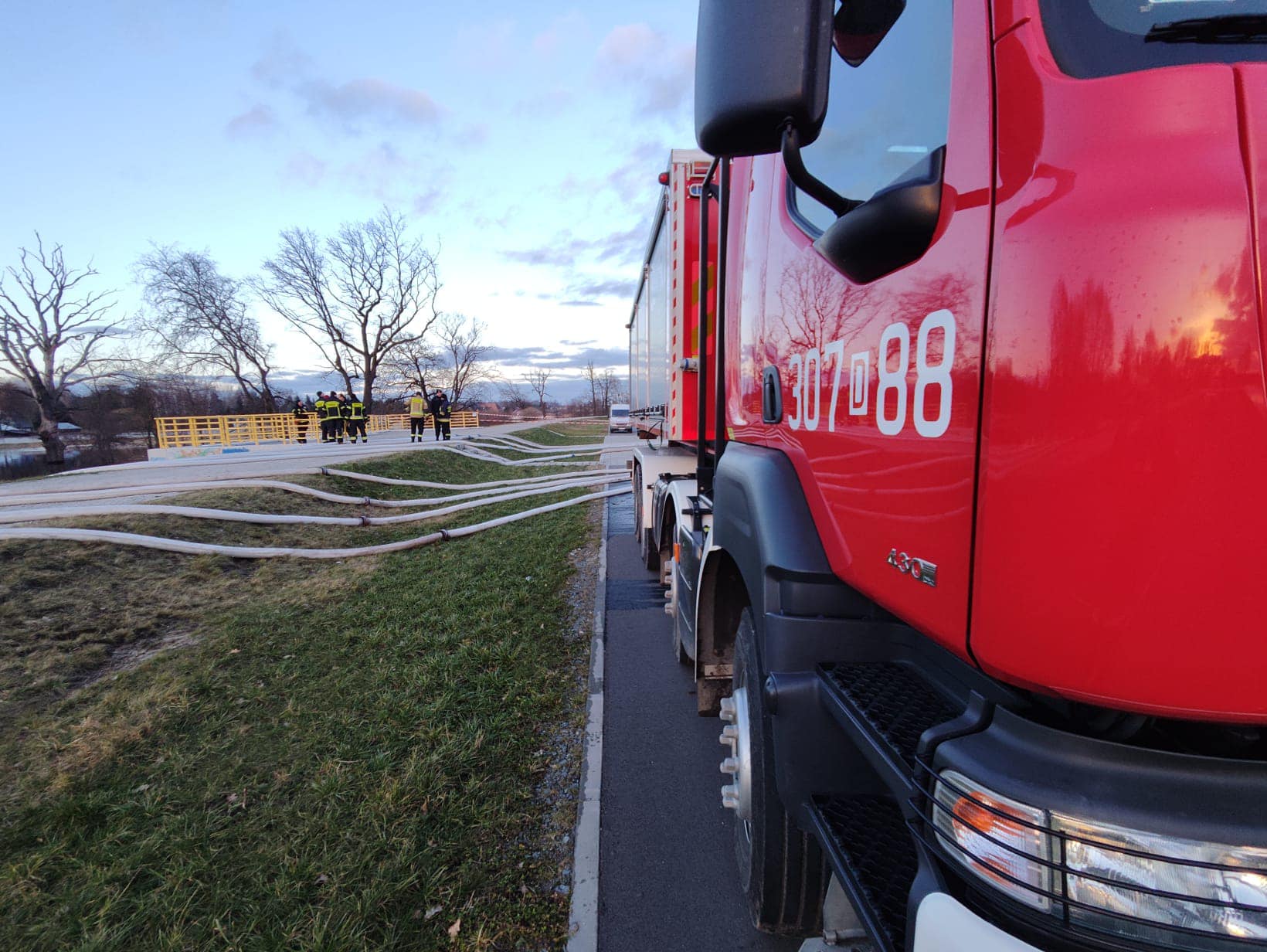 W związku z trudną sytuacją hydrologiczną i związanym z tym wysokim stanem wody w rzece Widawa, od wczoraj tj. 13.02.2024r. strażacy z Komendy Miejskiej PSP we Wrocławiu prowadzą działania w obszarze przepustu wodnego w Wilczycach na terenie Gminy Długołęka .