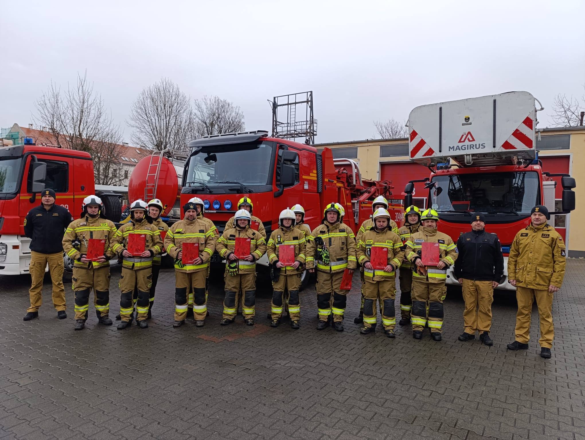 Szkolenie ukończyło 16 druhów. Absolwentom serdecznie gratulujemy oraz życzymy satysfakcji z wykonywanych zadań w szeregach Ochotniczych Straży Pożarnych.