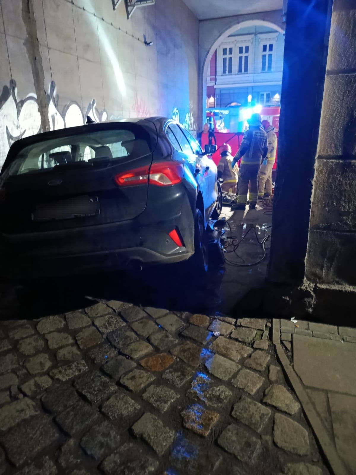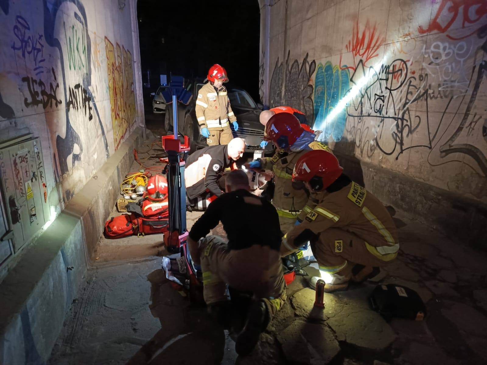 o mężczyźnie uwięzionym pod samochodem osobowym na ul. Piłsudskiego we Wrocławiu.