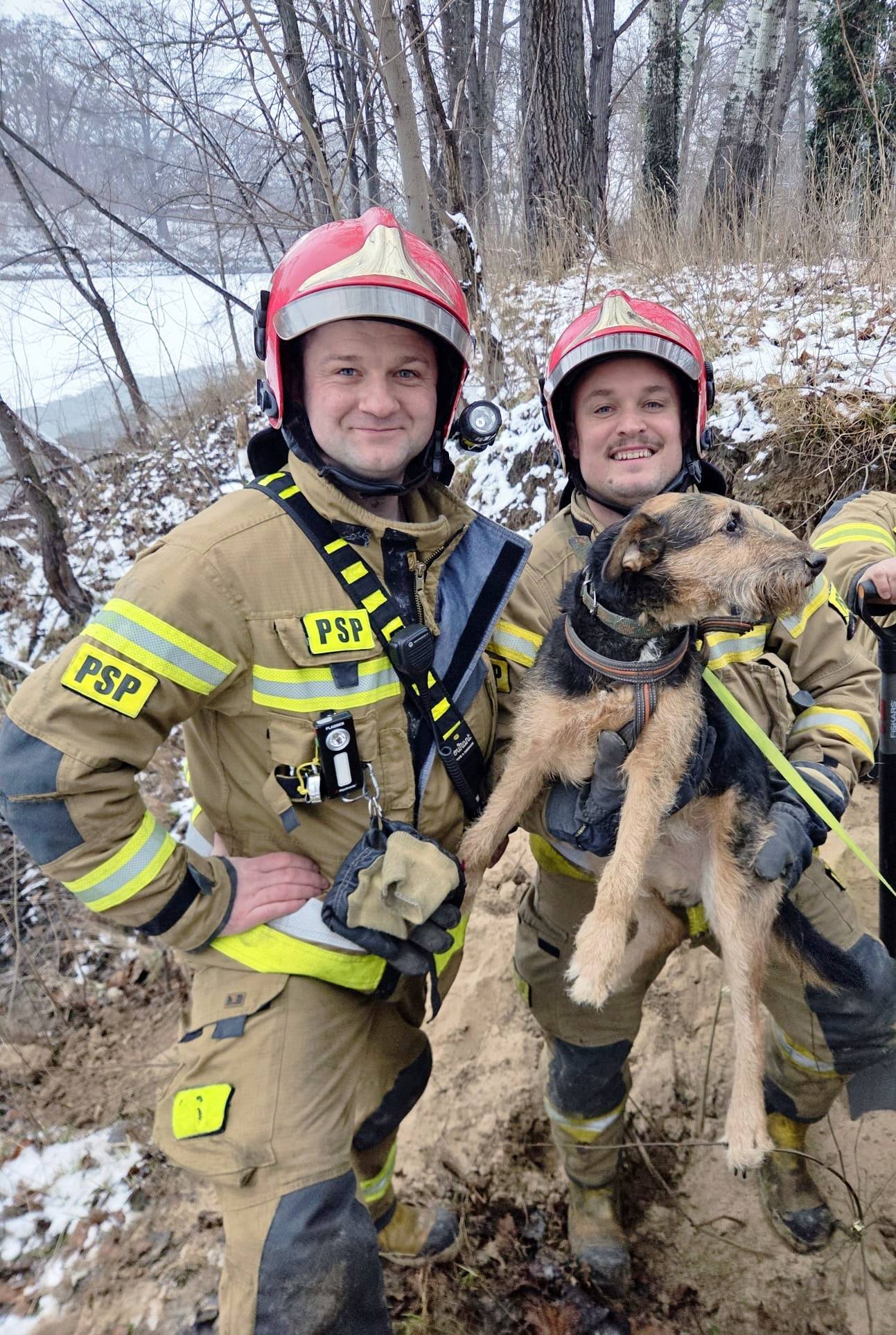 Pies uwięziony w norze przy brzegu Odry