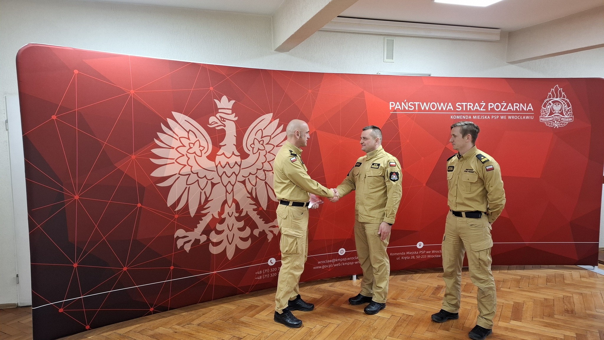 Decyzję wręczył pełniący obowiązki Komendanta Miejskiego PSP we Wrocławiu st. bryg. Krzysztof Gielsa w obecności Zastępcy Komendanta Miejskiego PSP we Wrocławiu