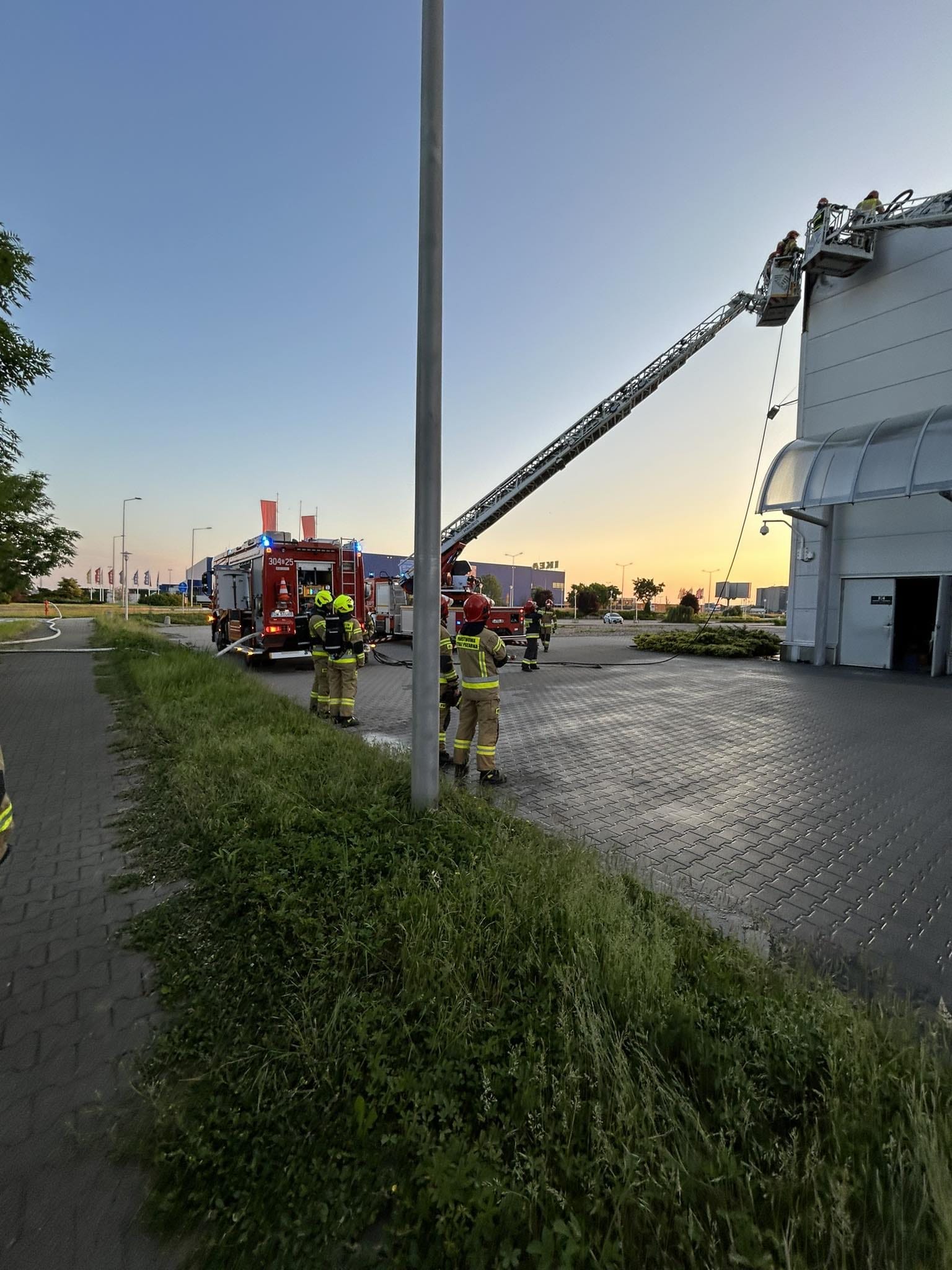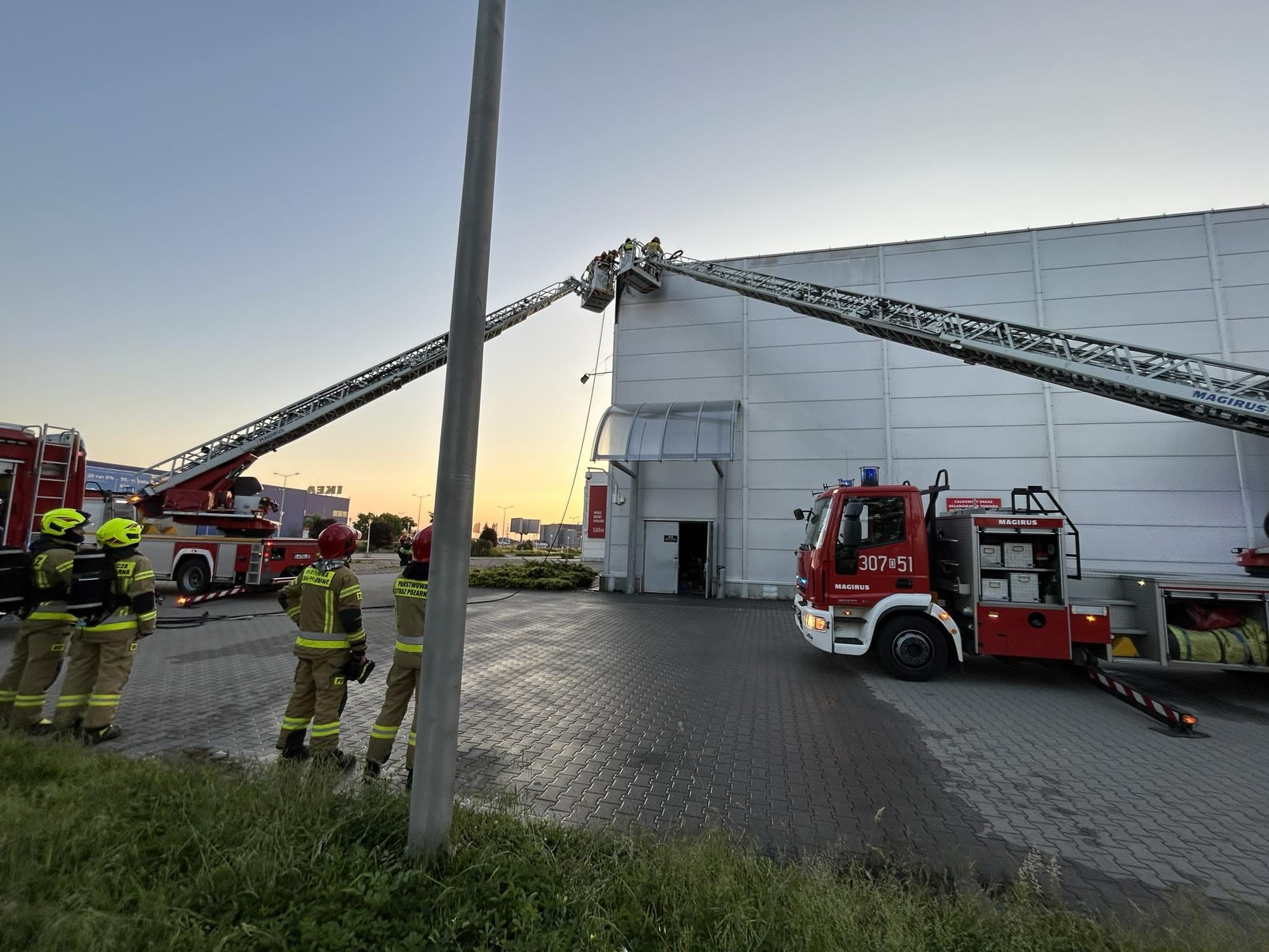 Pożar budynku usługowo-handlowego w Bielanach Wrocławskich przy ul. Magazynowej