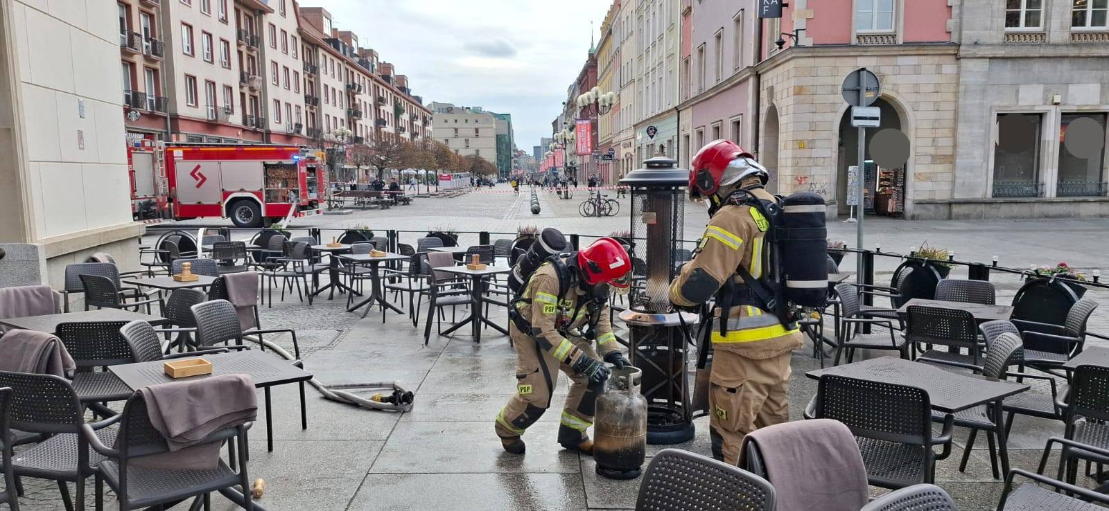 Pożar parasola ogrzewczego zlokalizowanego na ogródku gastronomicznym