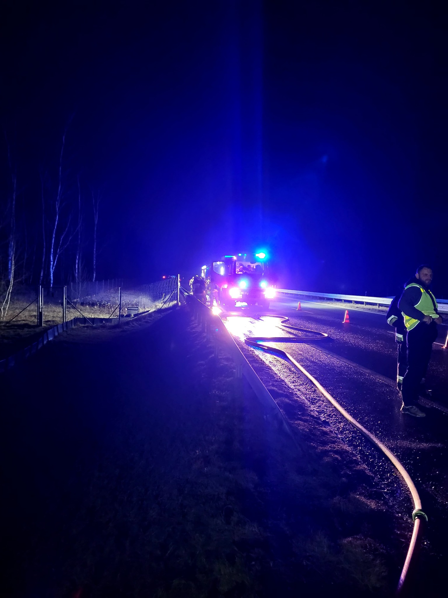 W dniu 9 marca 2025 r. o godzinie 20:56 Dyżurni SKKM PSP we Wrocławiu przyjęli zgłoszenie o pożarze pojazdu elektrycznego na 2,8 km drogi nr 372 (łącznik Długołęka) w kierunku centrum. W zdarzeniu brak osób poszkodowanych. Na miejsce zadysponowano 3 zastępy JOP oraz Oficera Operacyjnego KM PSP we Wrocławiu.