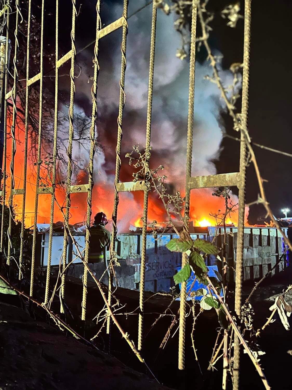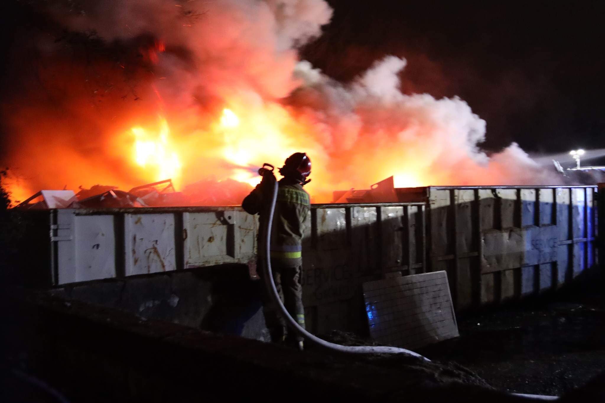 Po przybyciu na miejsce zdarzenia Kierujący Działaniem Ratowniczym ustalił, że pożarem objęte są elektrośmieci składowane na placu pod dwoma stalowymi wiatami. Widoczne były wybuchy baterii.