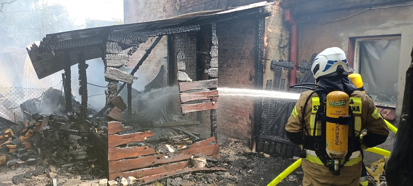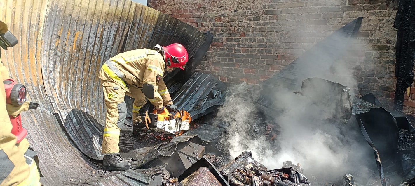 W dniu 22 sierpnia 2023 r. w miejscowości Wilczyce przy ul. Borowadoszło do pożaru wiaty z drewnem opałowym oraz blaszanego garażu, w którym znajdowały sie elektronarzędzia. Do obiektów przylegał budynek mieszkalny, który był zagrożony. W trakcie działań, do strażaków zgłosił się 16 letni chłopak z objawami zatrucia wziewnego, który przed przybyciem PSP próbował gasić powstały pożar. Udzielono mu kwalifikowanej pierwszej pomocy medycznej, a następnie przekazano ZRM. W działaniach brłąo udział 9 zastępów - PSP (5), OSP (4), w tym Oficer Operacyjny KM PSP.