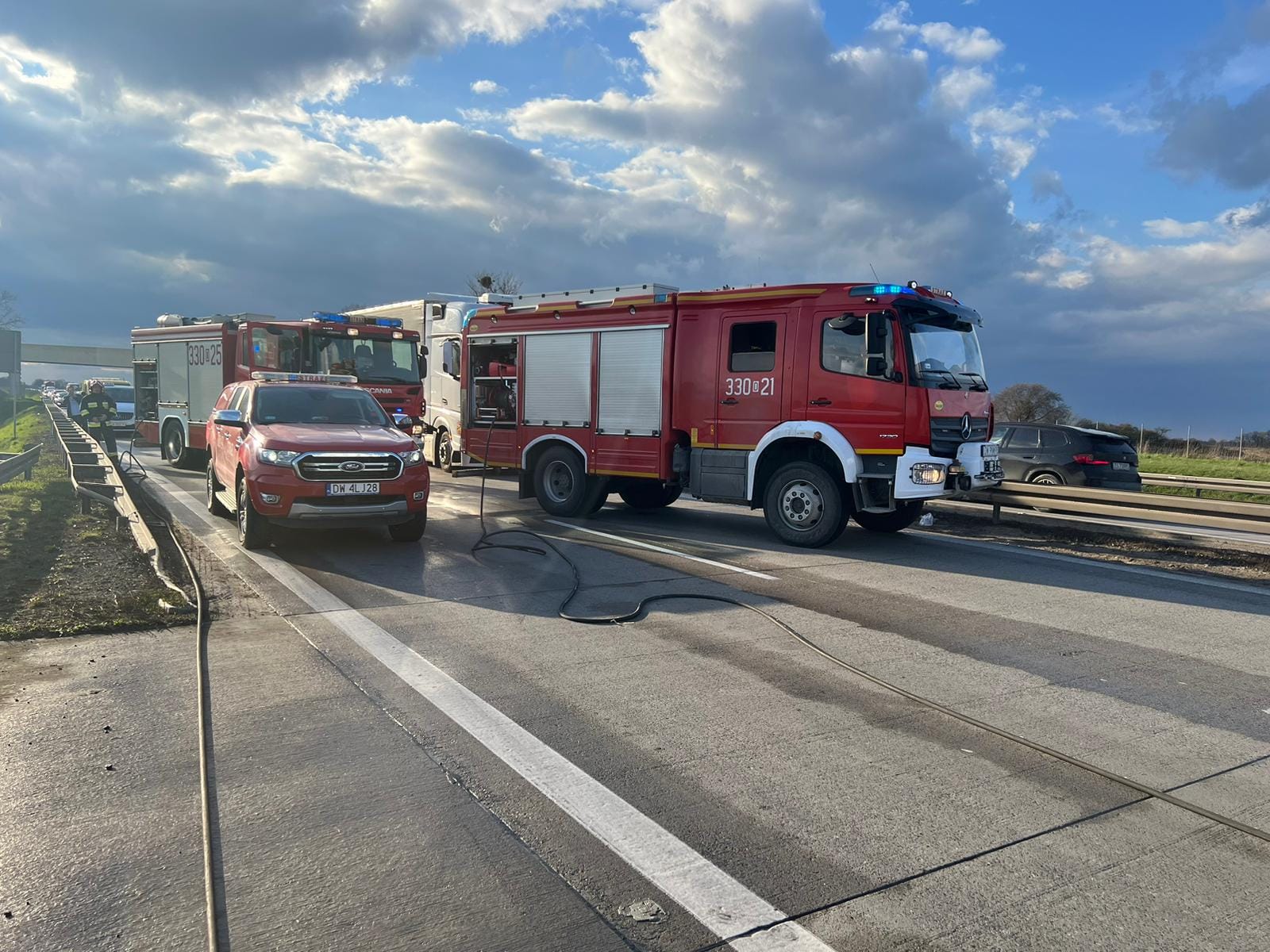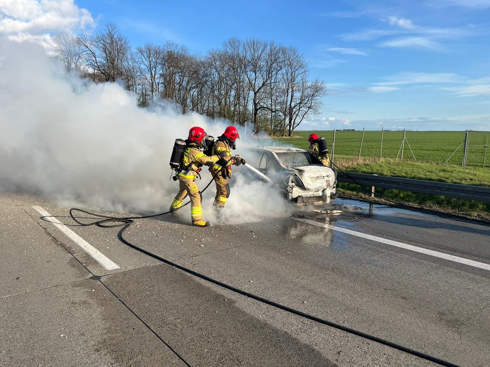 Pożaru samochodu osobowego na autostradzie A4 w kierunku Wrocławia