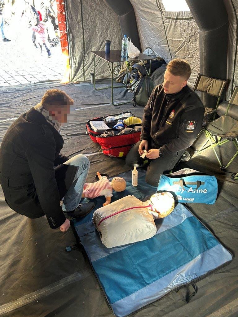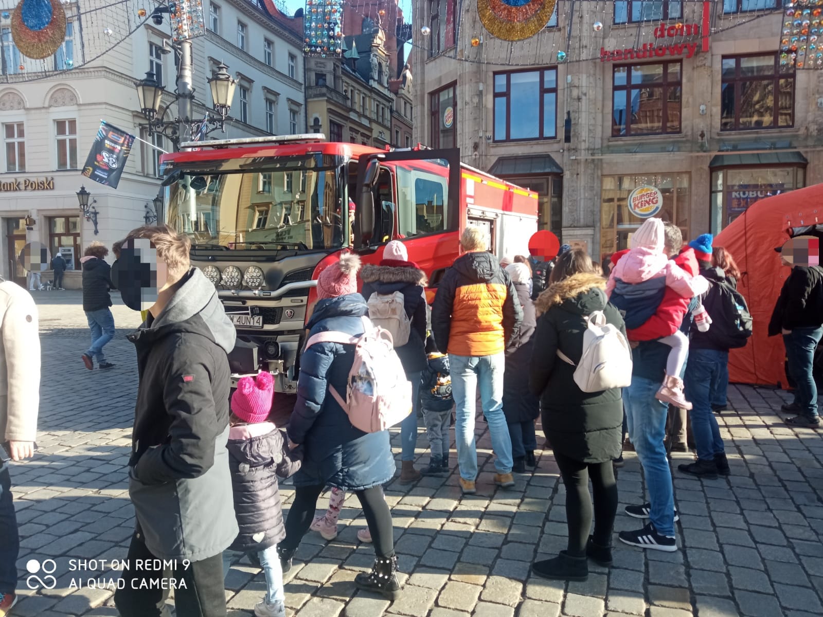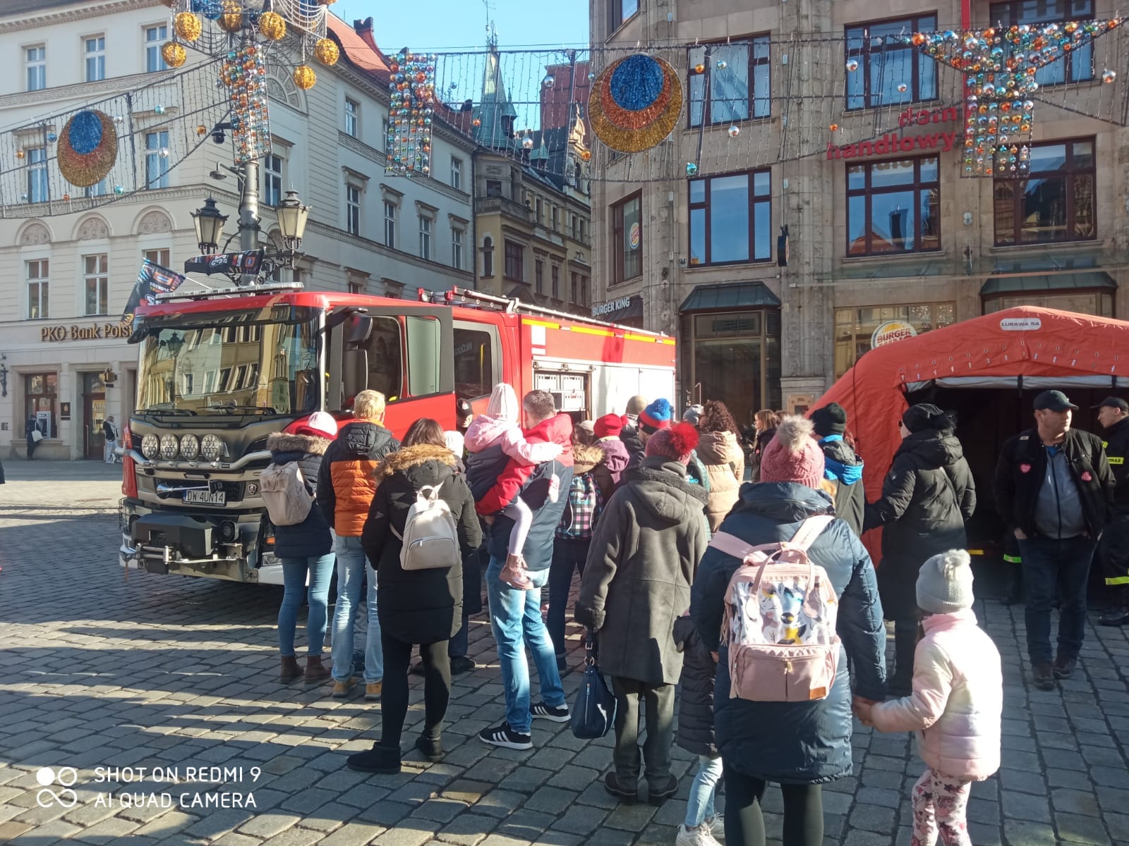 Na wrocławskim Rynku w ramach 32 Finału WOŚP strażacy KM PSP we Wrocławiu uczestniczyli w pokazie sprzętu oraz omawiali sposoby i możliwości prowadzenia działań ratowniczo - gaśniczych. Oprócz pojazdu gaśniczego można zapoznać się również z pojazdem wchodzącym w skład specjalistycznej grupy ratownictwa technicznego. Wrocławscy strażacy przeprowadzali również krótki instruktaż z udzielania pierwszej pomocy oraz prezentowali sprzęt wykorzystywany w działaniach ratowniczo-gaśniczych.