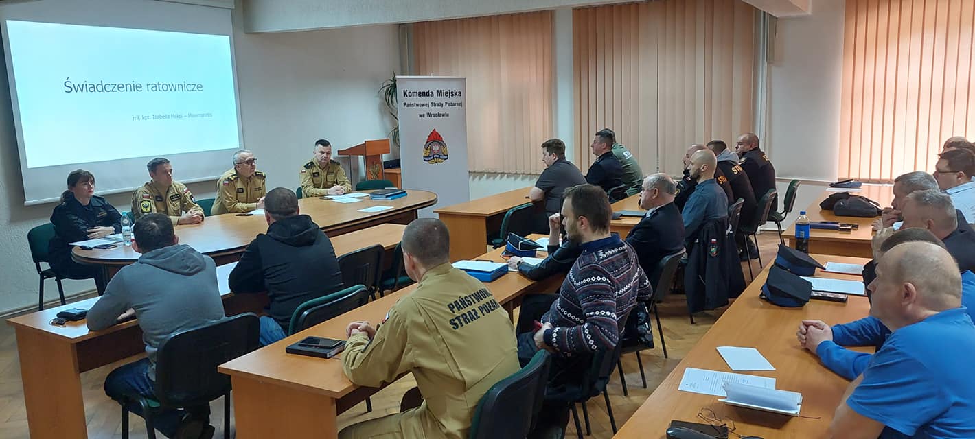 Ponadto w spotkaniu wzięli również udział pełniący obowiązki Zastępcy Komendanta Miejskiego PSP we Wrocławiu st. kpt. Tomasz Szwajnos oraz przedstawiciele Wydziałów Operacyjno-Szkoleniowego i Organizacyjno-Kadrowego. Podczas zebrania poruszone zostały tematy dotyczące gotowości operacyjnej, szkoleń, dotacji a także świadczenia ratowniczego dla druhów, którzy osiągnęli wiek emerytalny.