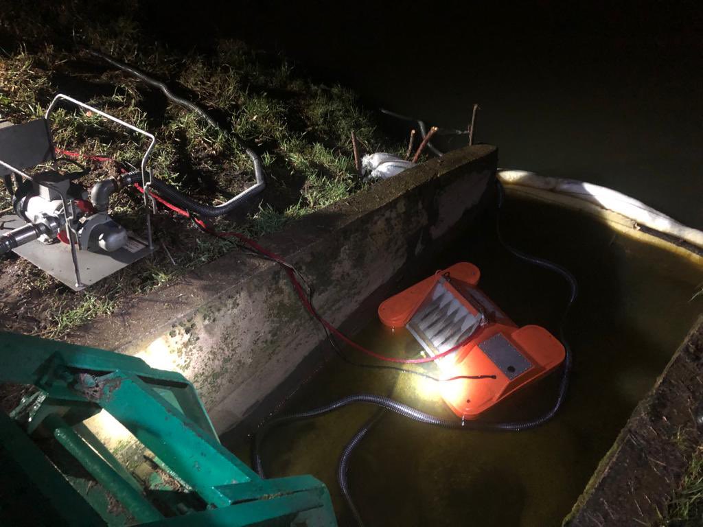 Usuwanie plamy ropopochodnej na rzece Ślęza we Wrocławiu