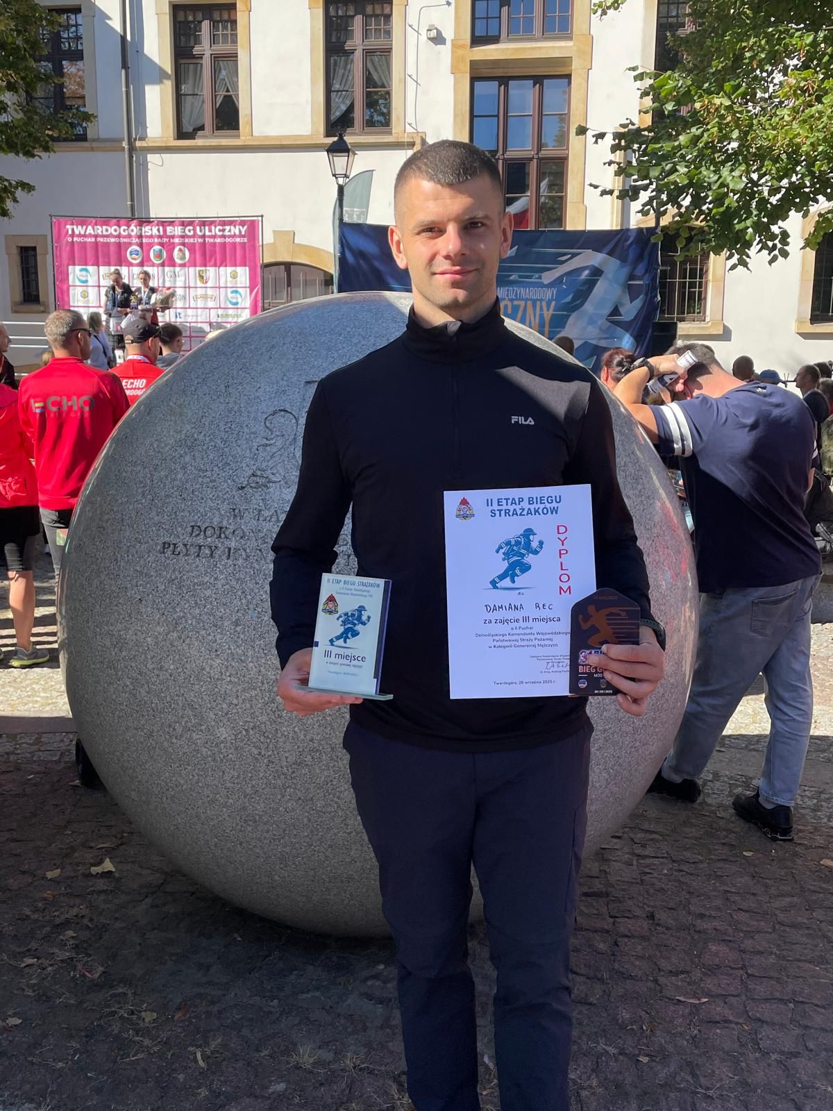 Damian Rec, reprezentujący Komendę Miejską Państwowej Straży Pożarnej we Wrocławiu, zajął 3 miejsce w II etapie Pucharu Dolnośląskiego Komendanta Wojewódzkiego PSP. W klasyfikacji generalnej całego biegu Damian zajął również 3 miejsce w kategorii wiekowej M30, co świadczy o ciężkiej pracy jaką wkłada w treningi i przygotowanie do zawodów.