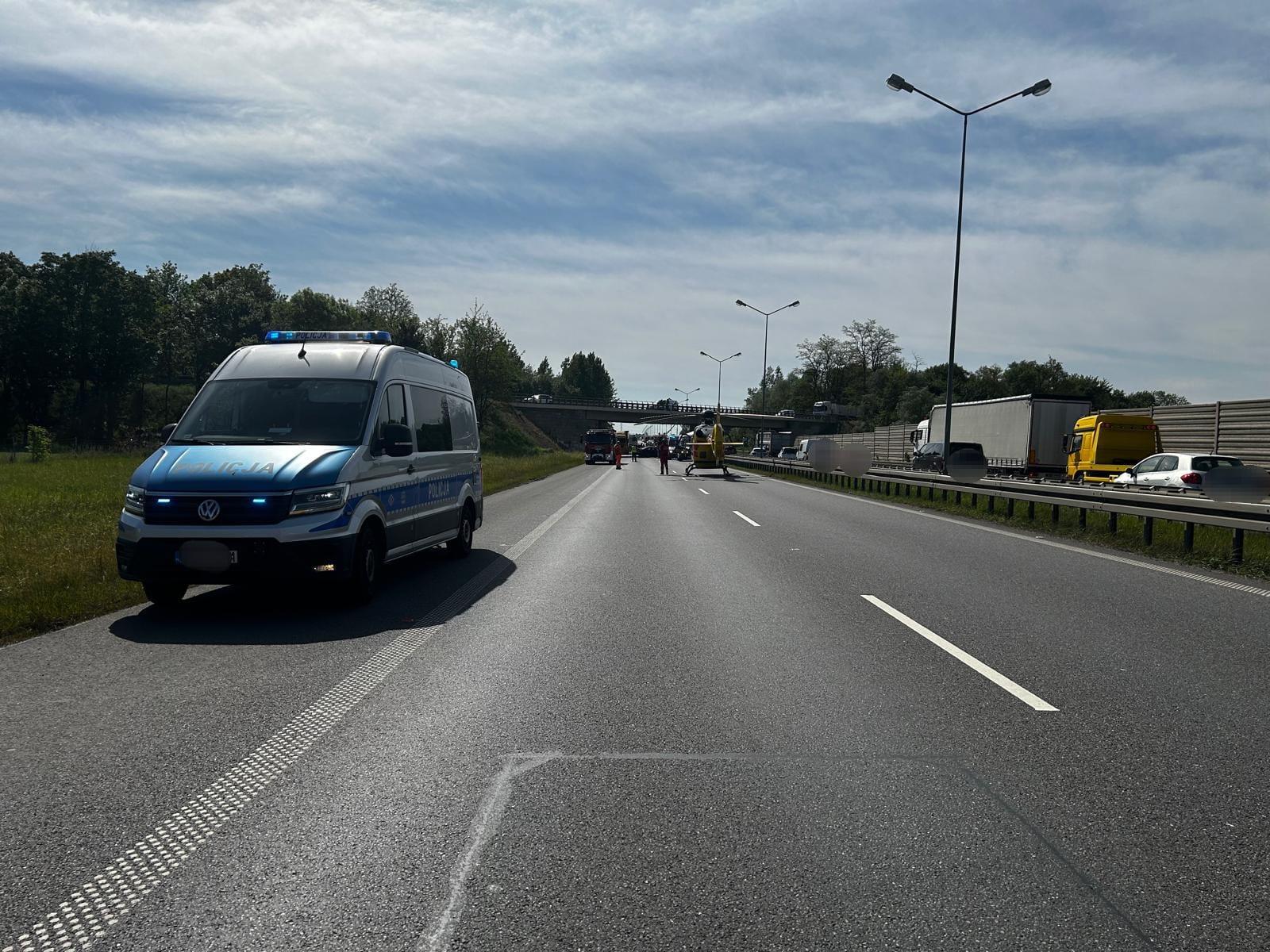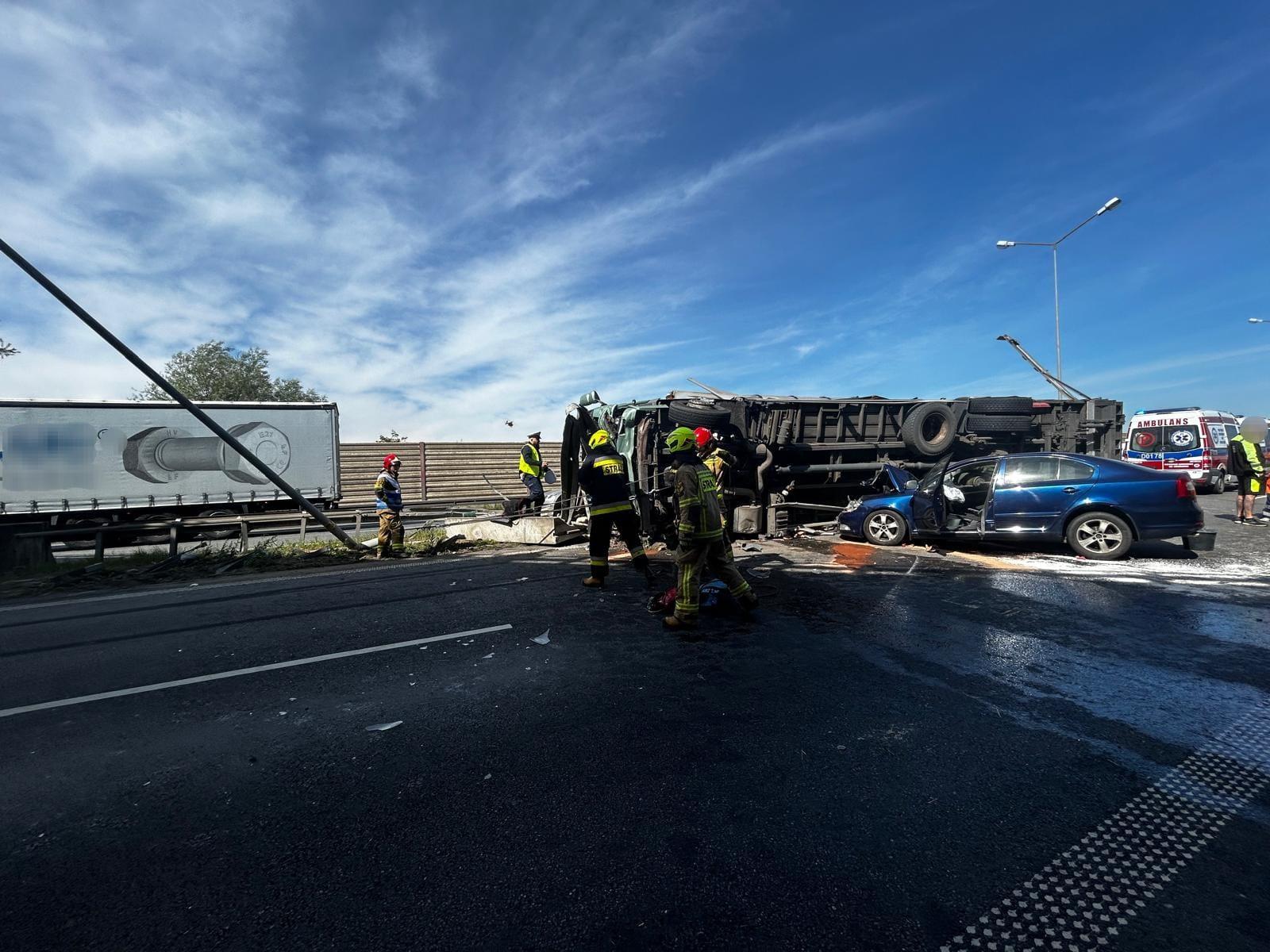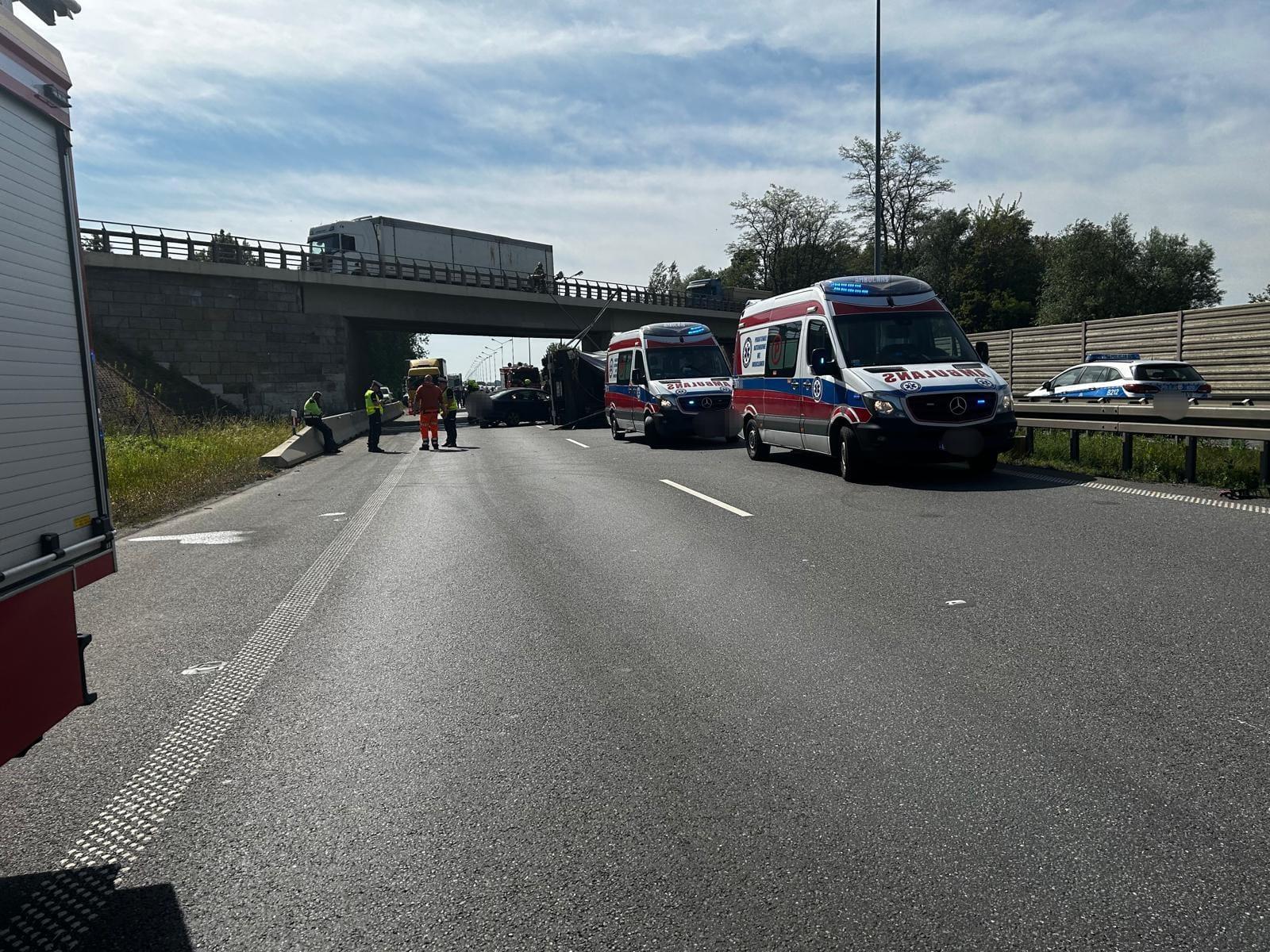 Wypadek samochodu ciężarowego z samochodem osobowym na 165km A4 w kierunku Wrocławia
