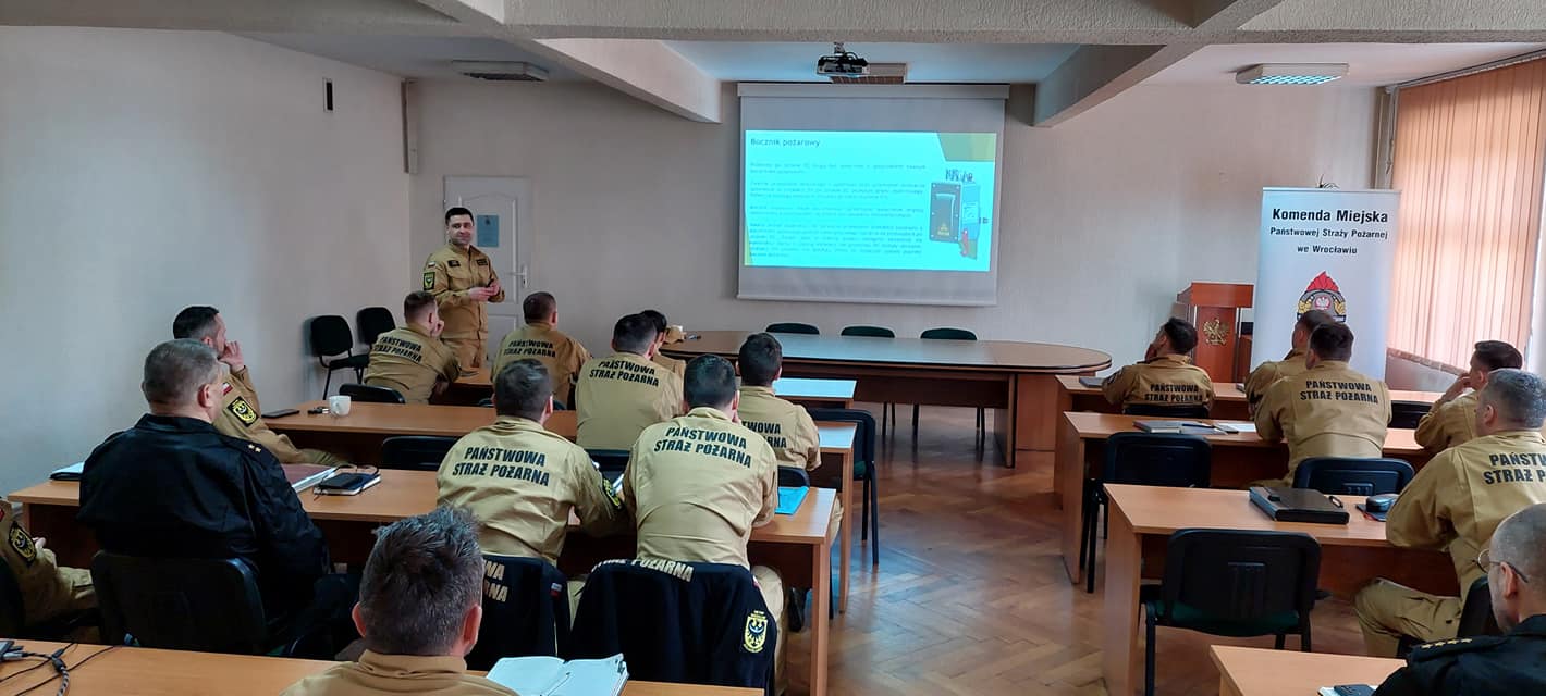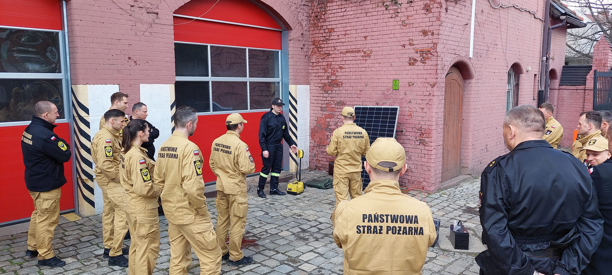 W dniu 12 kwietnia w świetlicy KM PSP we Wrocławiu odbyła się prelekcja dotyczącą problematyki zagrożeń dla strażaków podczas prowadzenia działań w obrębie instalacji fotowoltaicznych. Temat przedstawiał Zastępca Dowódcy JRG Wołów st. kpt. Daniel Lisiecki. Po części teoretycznej na placu wewnętrznym komendy zaprezentowany został sposób działania najprostszej instalacji która może być wykorzystywana w warunkach domowych. Koledze z Wołowa dziękujemy za poświęcony czas oraz możliwość zgłębienia wiedzy w tym temacie.