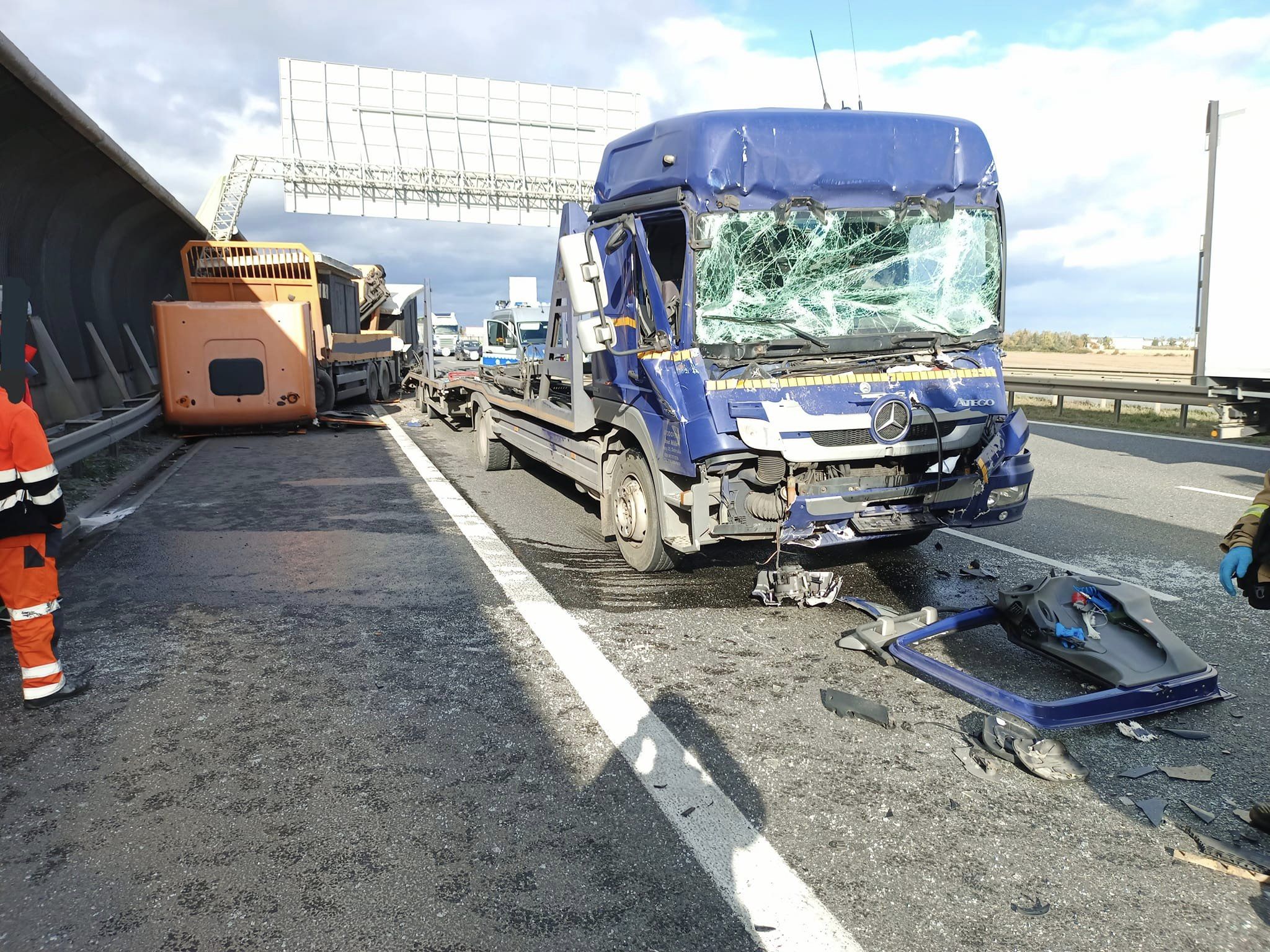 W dniu 6 listopada o godzinie 11:26 do Stanowiska Kierowania Komendanta Miejskiego PSP we Wrocławiu wpłynęło zgłoszenie o wypadku trzech pojazdów ciężarowych na 8 km A8 w kierunku Kudowy Zdrój. Na miejsce zdarzenia zadysponowane cztery dostępne oraz Oficera Operacyjnego KM PSP we Wrocławiu. Jednego z kierowców, który był uwięziony w pojeździe, strażacy ewakuowali i przekazali zespołowi ratownictwa medycznego. Na czas prowadzenia działań ruch na jezdni był wstrzymany.