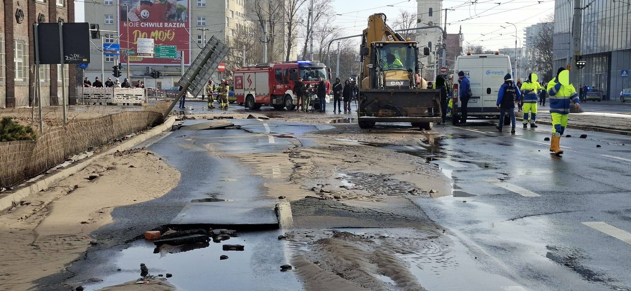 Po przybyciu na miejsce zdarzenia zastępu straży pożarnej stwierdzono, że doszło do pęknięcia magistrali wodnej. Wydobywająca się woda stworzyła rozlewisko o powierzchni 800 m2. Woda zalała ul. gen. R. Traugutta oraz ul. Podwale w kierunku al. J.Słowackiego. Woda wdarła się również do sąsiadujących budynków. Z racji rozmiaru rozlewiska Kierujący Działaniem Ratowniczym poprosił o zadysponowanie dodatkowych zastępów PSP.