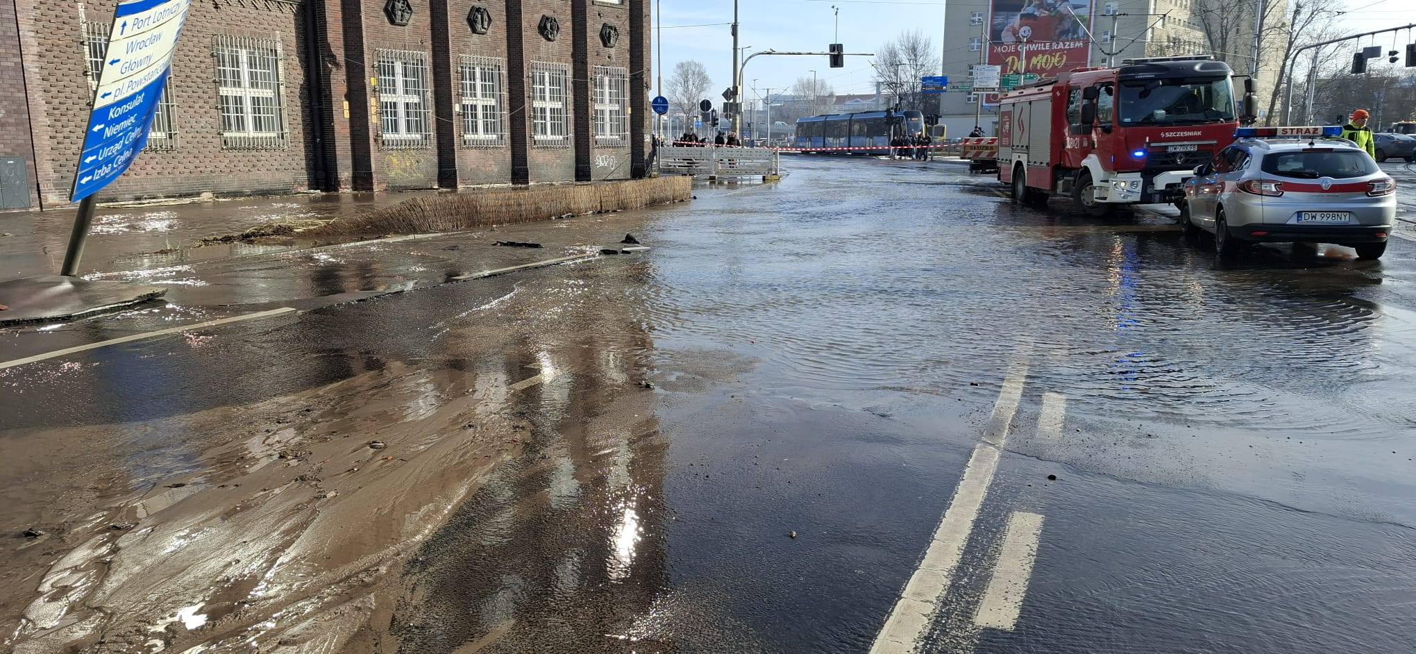 Zgłoszenie o zalanej ulicy Traugutta we Wrocławiu
