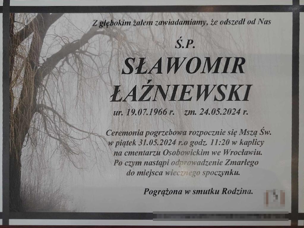 Z głębokim żalem informujemy, że na wieczną służbę odszeł były funkcjonariusz Komendy Miejskiej Państwowej Straży Pożarnej we Wrocławiu - st. ogn. Sławomir Łaźniewski.