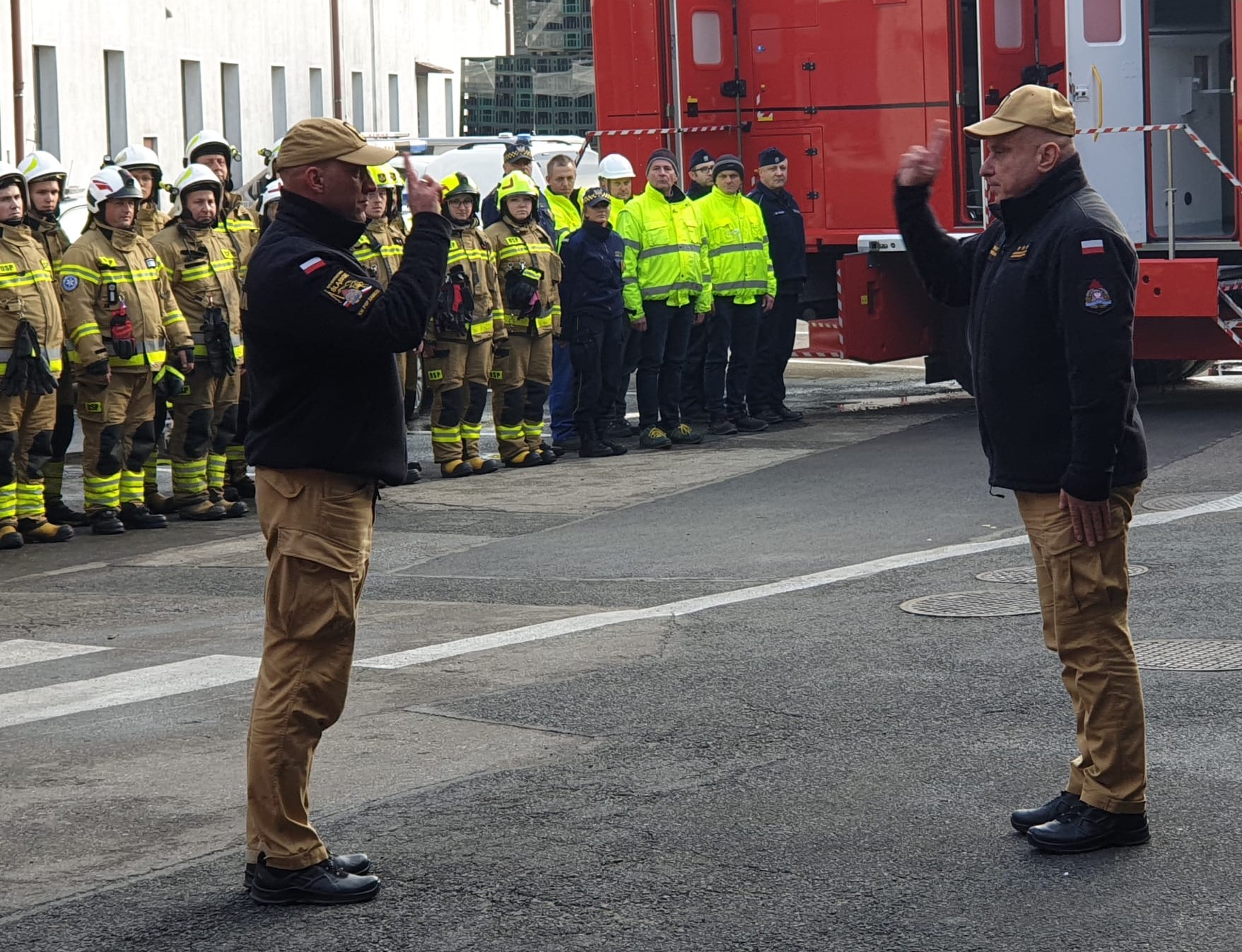 Ze strony właściciela zakładu głos zabrał Pan Jarosław Zawistowski, który podkreślił, że w ich zakładzie dużą uwagę przywiązuje się do aspektów bezpieczeństwa instalacji oraz prowadzonych procesów, a wspólne ćwiczenia to również element dbałości o bezpieczeństwo zakładu oraz sąsiednich terenów.
