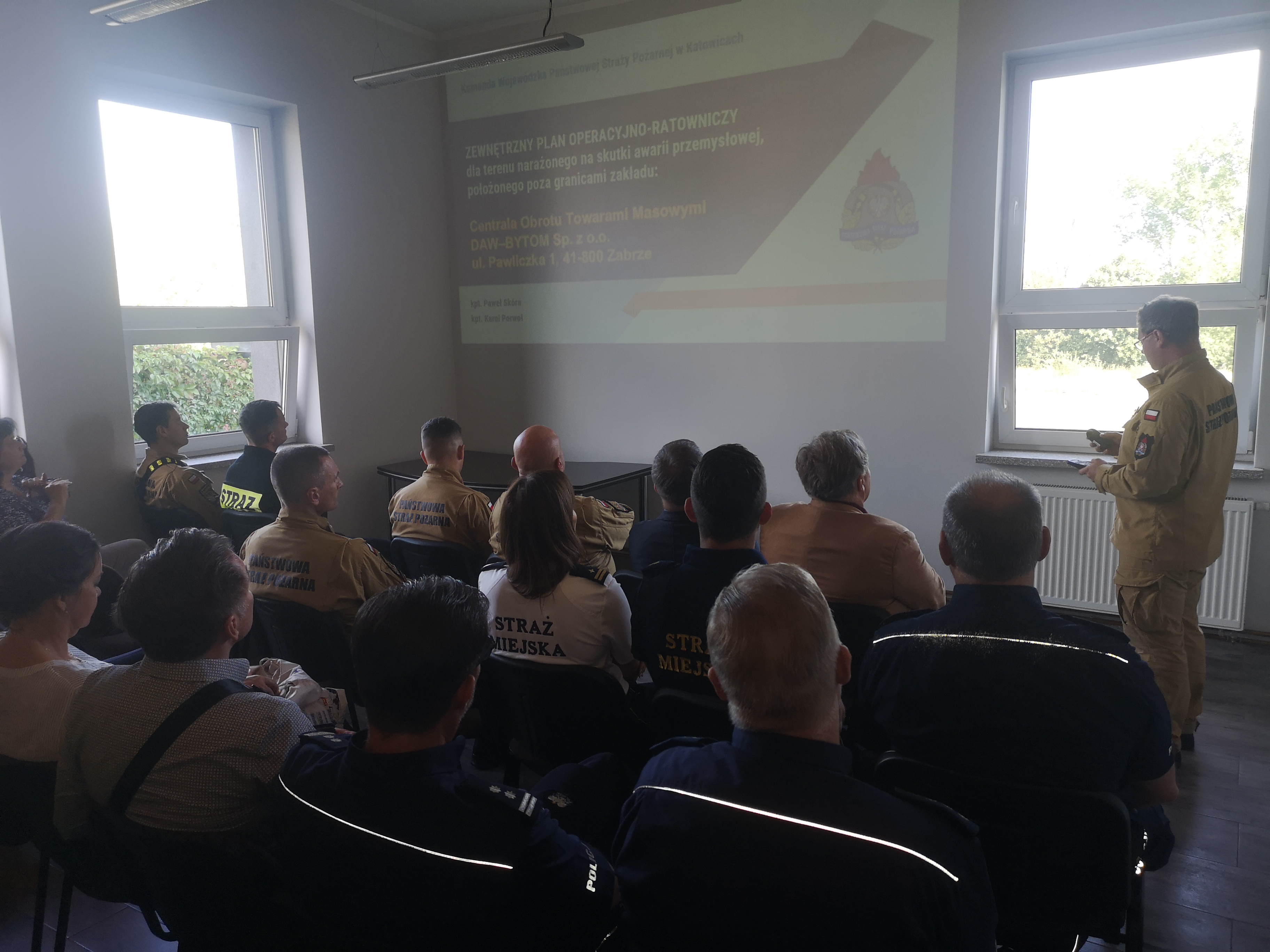 W środę 10 września 2025 roku na terenie zakładu DAW-BYTOM Sp. z o. o. zlokalizowanego w Zabrzu przy ul. Koksowniczej odbyły się ćwiczenia Państwowej Straży Pożarnej z udziałem służb współdziałających. Ich celem była weryfikacja Zewnętrznego Planu Operacyjno – Ratowniczego (ZPOR) dla zakładu dużego ryzyka wystąpienia poważnej awarii przemysłowej, przedstawienie planu przedstawicielom służb i podmiotów współdziałających oraz omówienie przyjętych scenariuszy awaryjnych, ze szczególnym uwzględnieniem terenów i obiektów zagrożonych skutkami potencjalnej awarii na terenie zakładu.