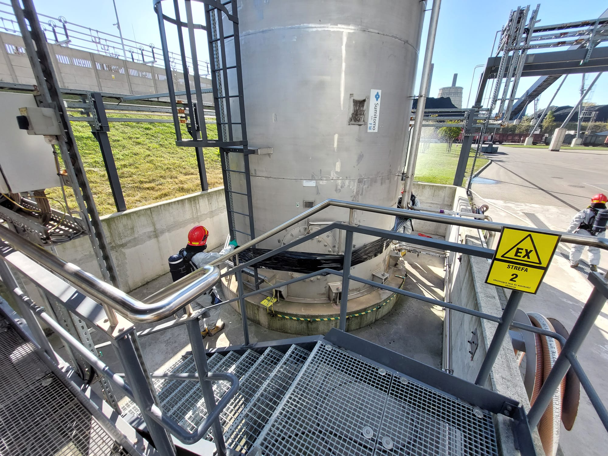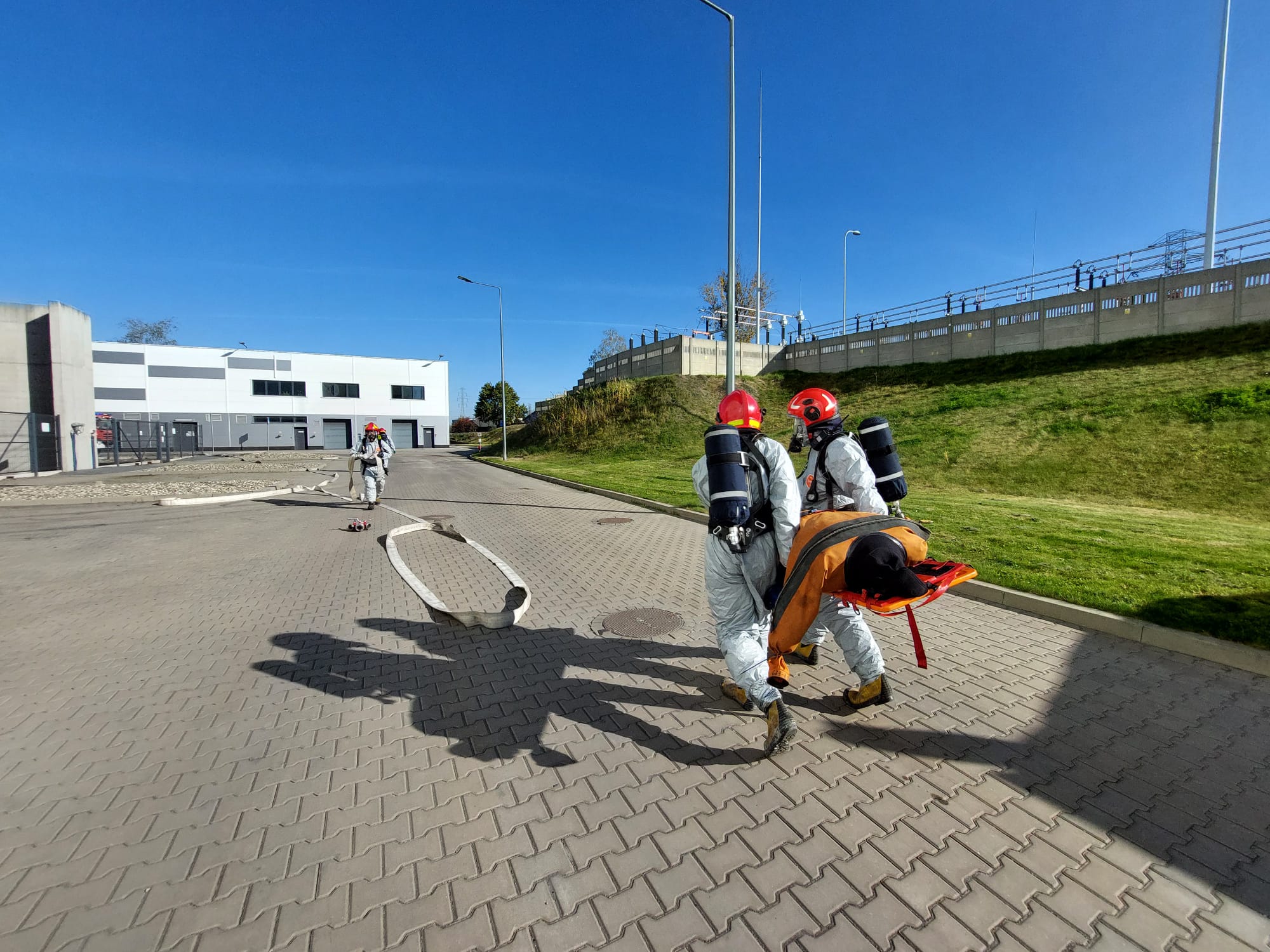 Przećwiczone zostało reagowanie służb na akt sabotażu w elektrociepłowni Fortum. Na skutek podłożenia ładunku wybuchowego doszło do rozszczelnienia zbiornika z wodą amoniakalną co spowodowało niebezpieczeństwo skażenia na dużym terenie.