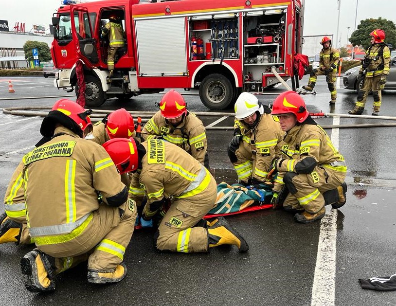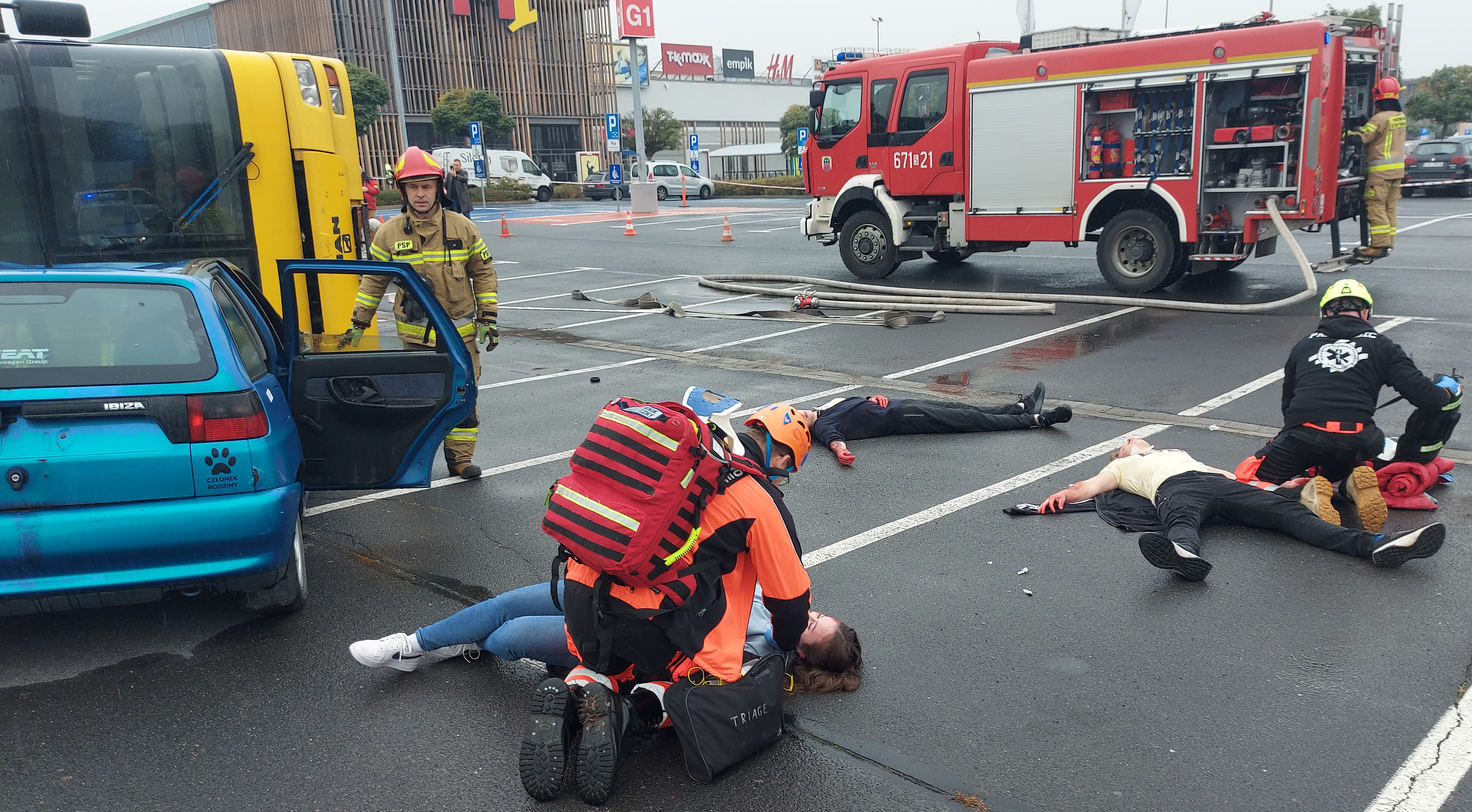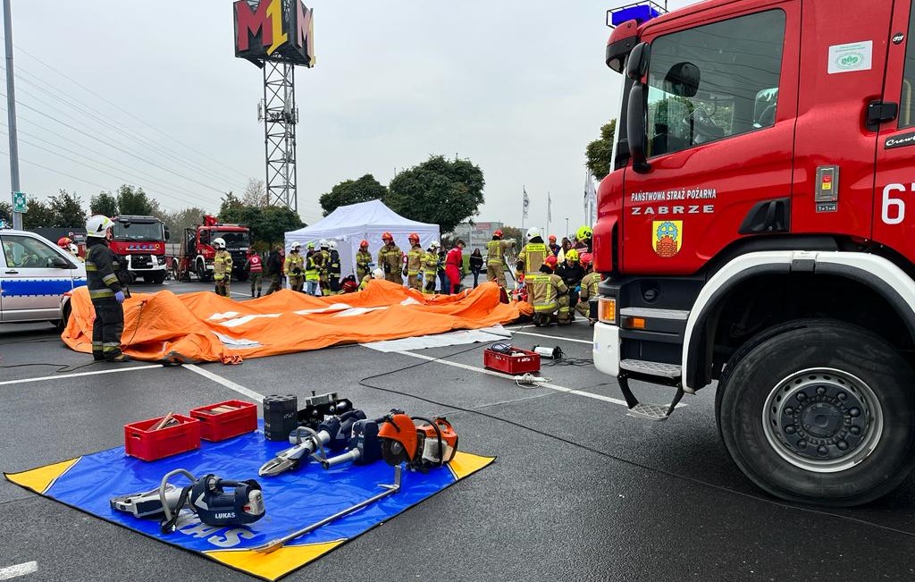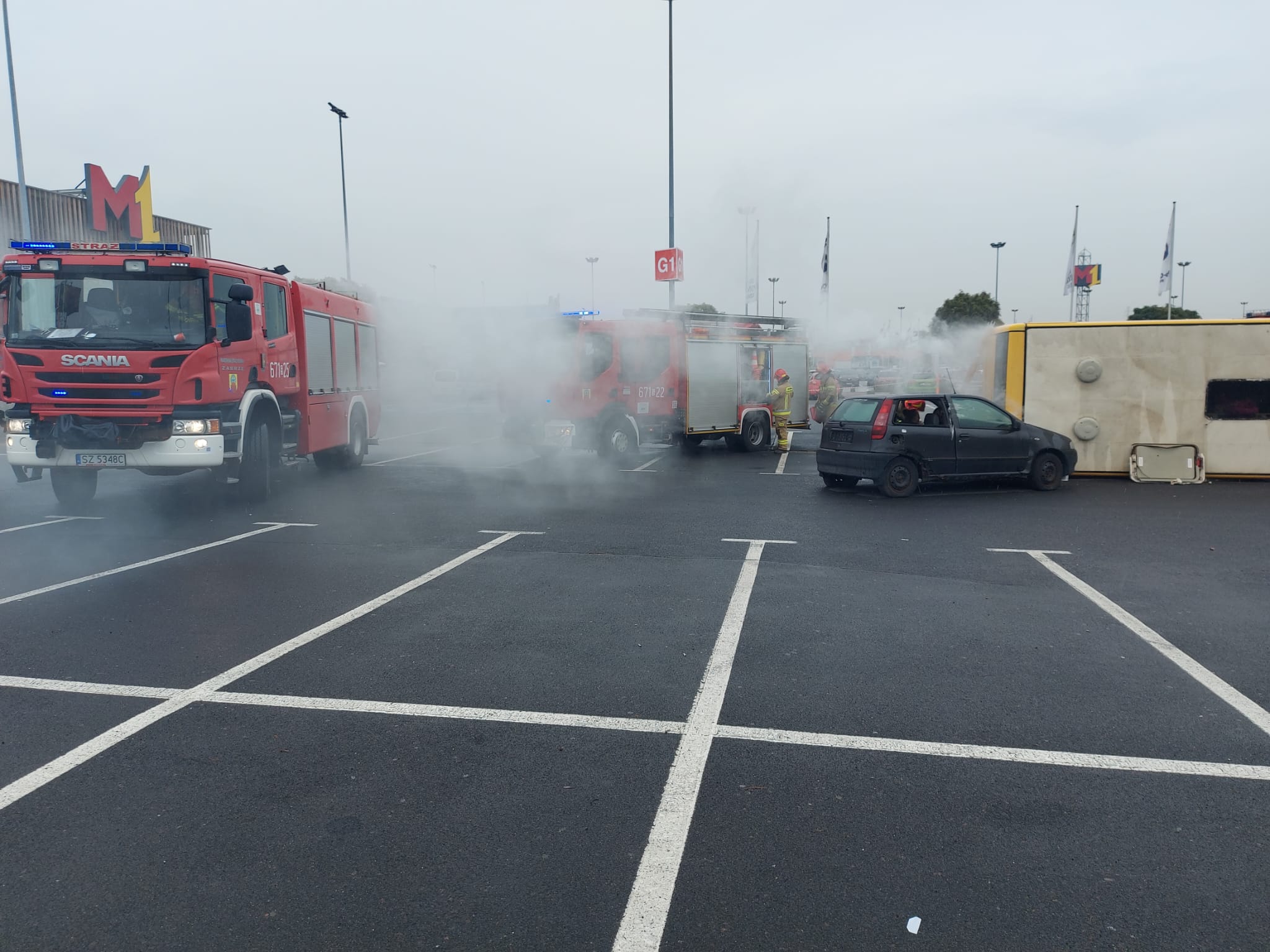 19 października 2023r. na terenie parkingu Centrum Handlowego M1 przy ul. Szkubacza 1 w Zabrzu jednostki Państwowej Straży Pożarnej oraz Ochotniczej Straży Pożarnej z miasta Zabrze prowadziły ćwiczenia pod kryptonimem „KARAMBOL 2023”.
