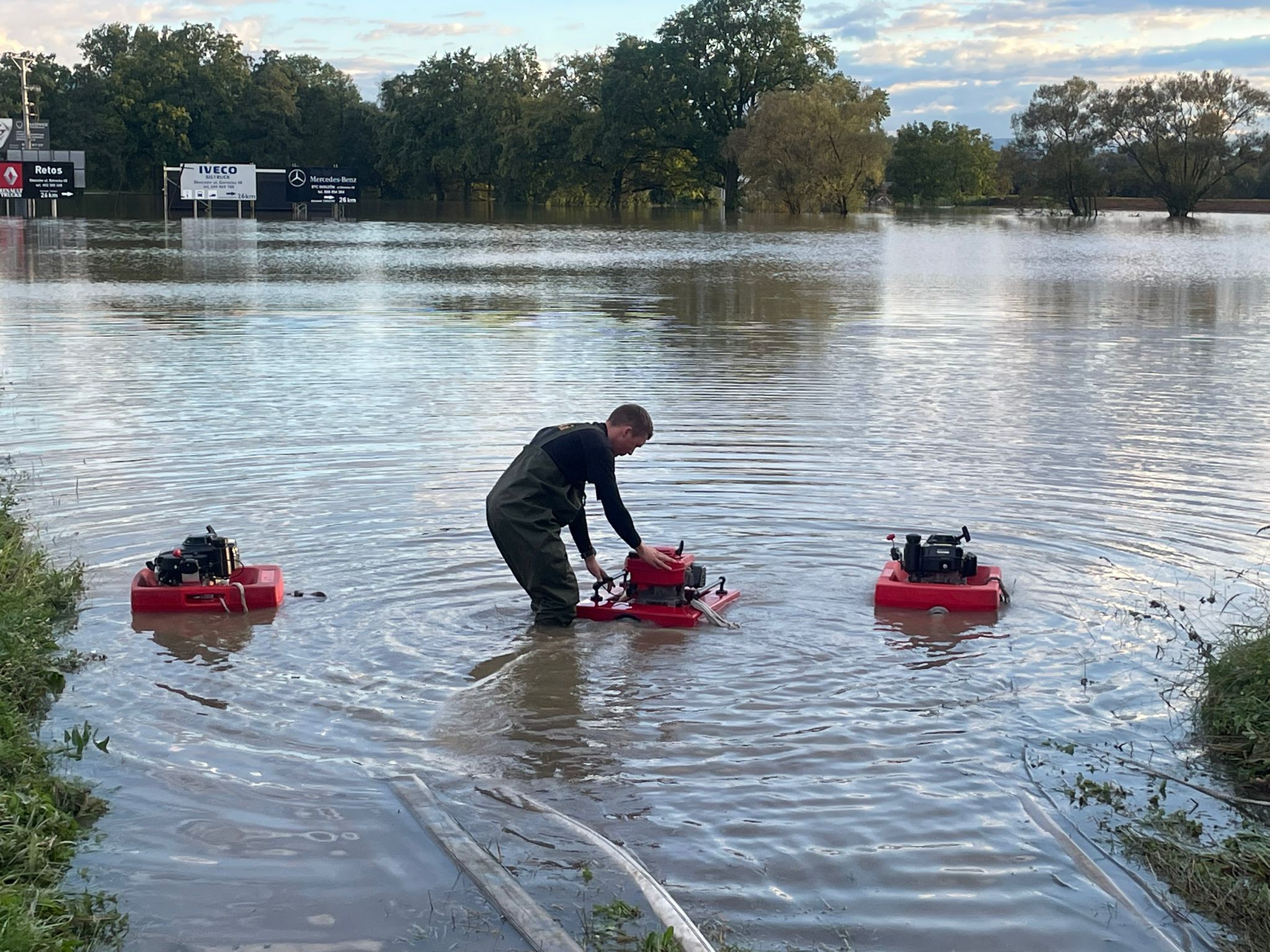 Długotrwałe i intensywne działania strażaków Państwowej i Ochotniczej Straży Pożarnej wraz z mieszkańcami, mające na celu zabezpieczenie i uszczelnienie przesiąkających wałów przeciwpowodziowych, są prowadzone przy ul. Oświęcimskiej i ul. Legnickiej. Stan cieków wodnych i rzeki Kłodnica w okolicach tych ulic jest na bieżąco monitorowany. Na miejsce zadysponowano pompy wysokiej wydajności z Komendy Miejskiej PSP w Zabrzu oraz zastęp z pompami z OSP Makoszowy w celu ograniczenia rozlewiska. Na miejscu działań przy ul. Oświęcimskiej obecna również była Prezydent Miasta Zabrze Pani Agnieszka Rupniewska.