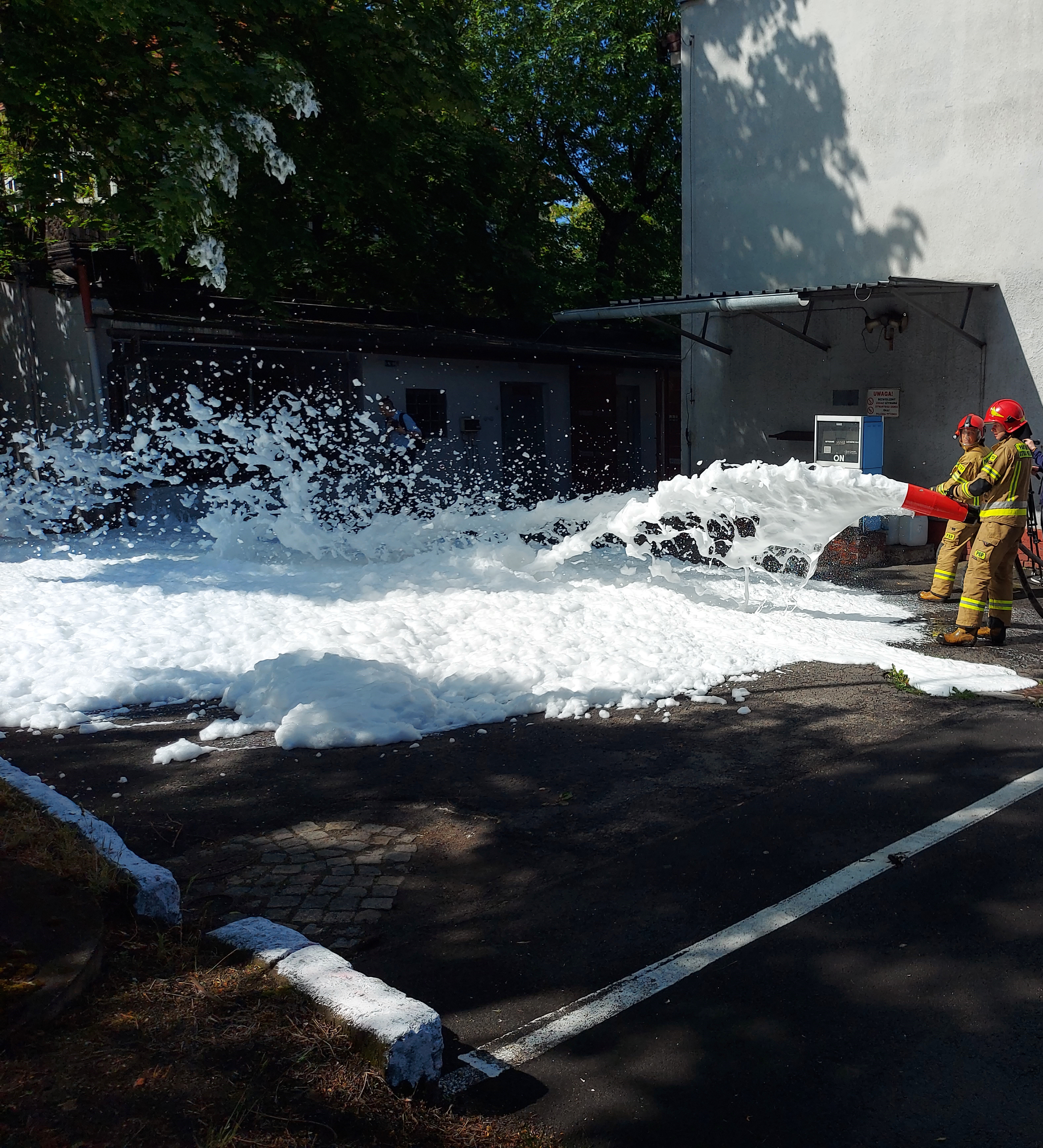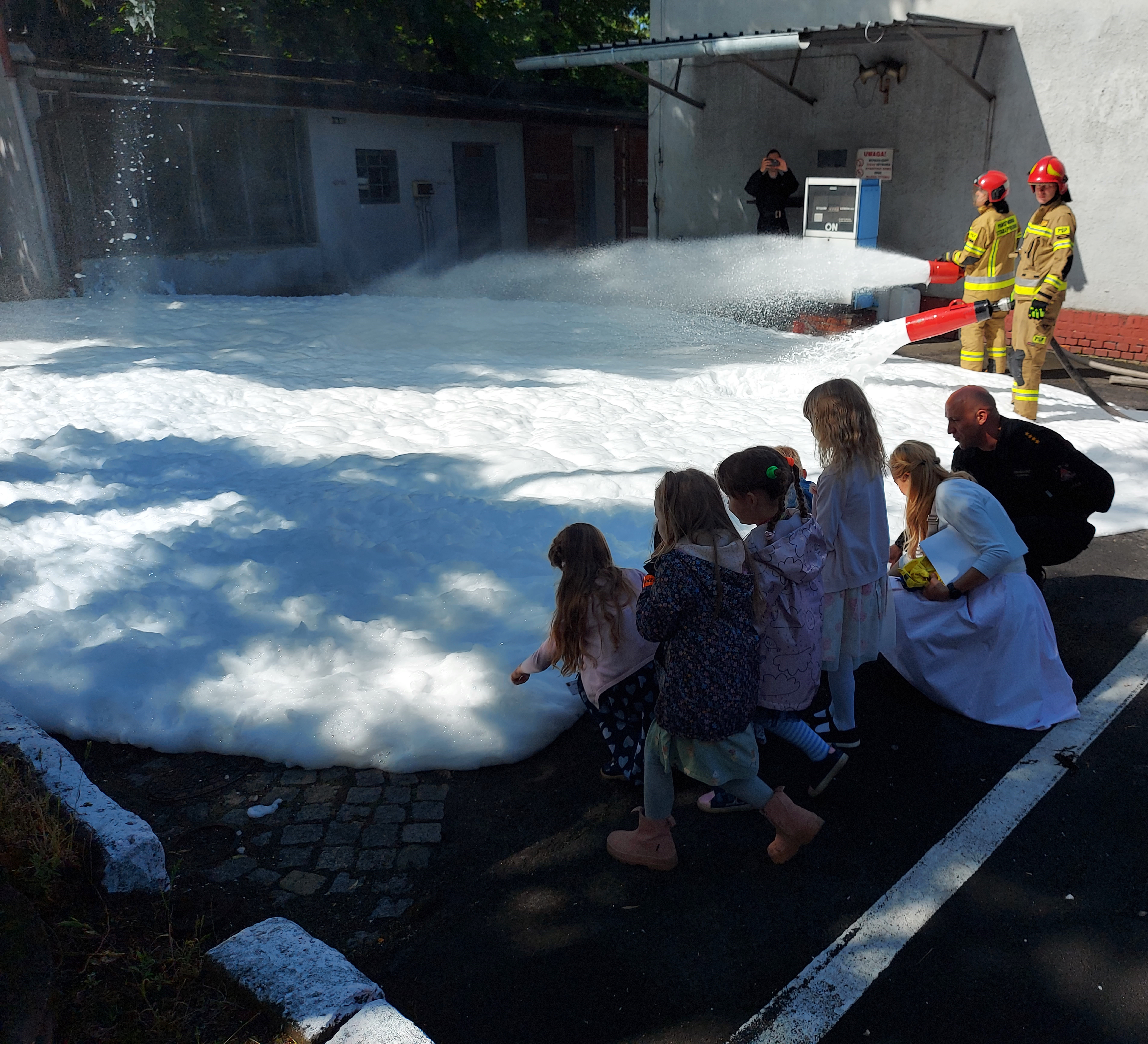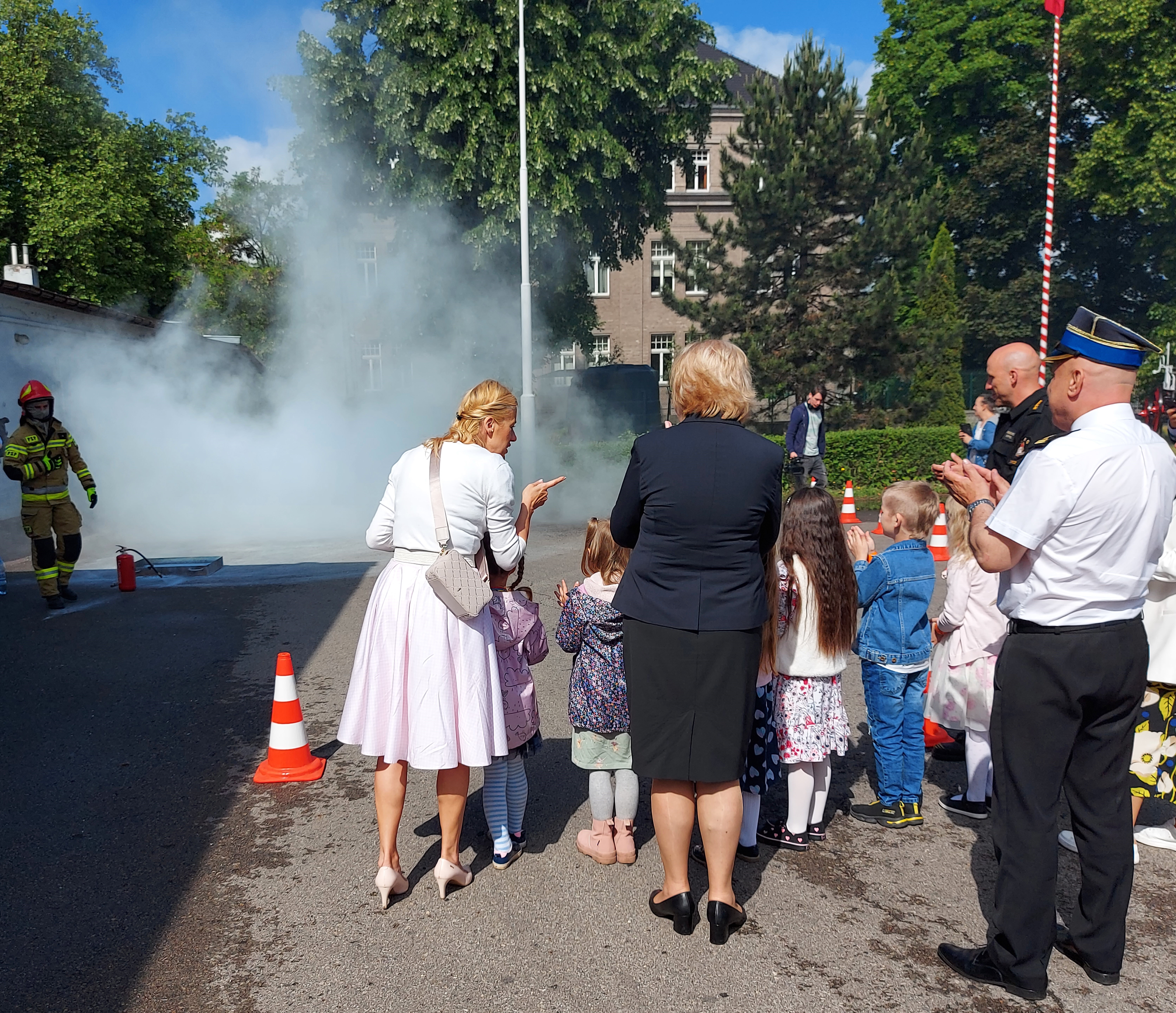 Całość wizyty zwieńczył pokaz przygotowany dla dzieci przez strażaków zabrzańskiej jednostki ratowniczo-gaśniczej. Dzieci mogły zobaczyć działania gaśnicze z użyciem gaśnicy proszkowej oraz możliwości wykorzystania armatury pianotwórczej. Dużą atrakcją okazała się prezentacja działka wodnego.