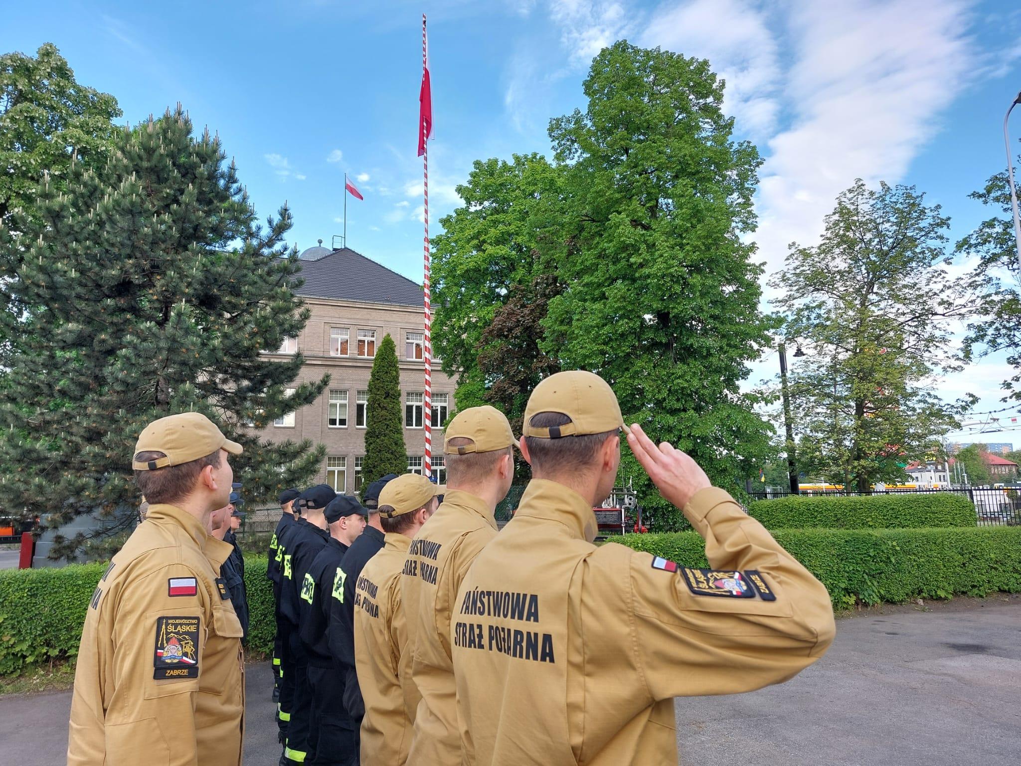 2 maja o godzinie 8:00 funkcjonariusze Komendy Miejskiej Państwowej Straży Pożarnej w Zabrzu dokonali uroczystej zmiany służby, podczas której odegrano hymn państwowy i podniesiono flagę państwową na maszt.